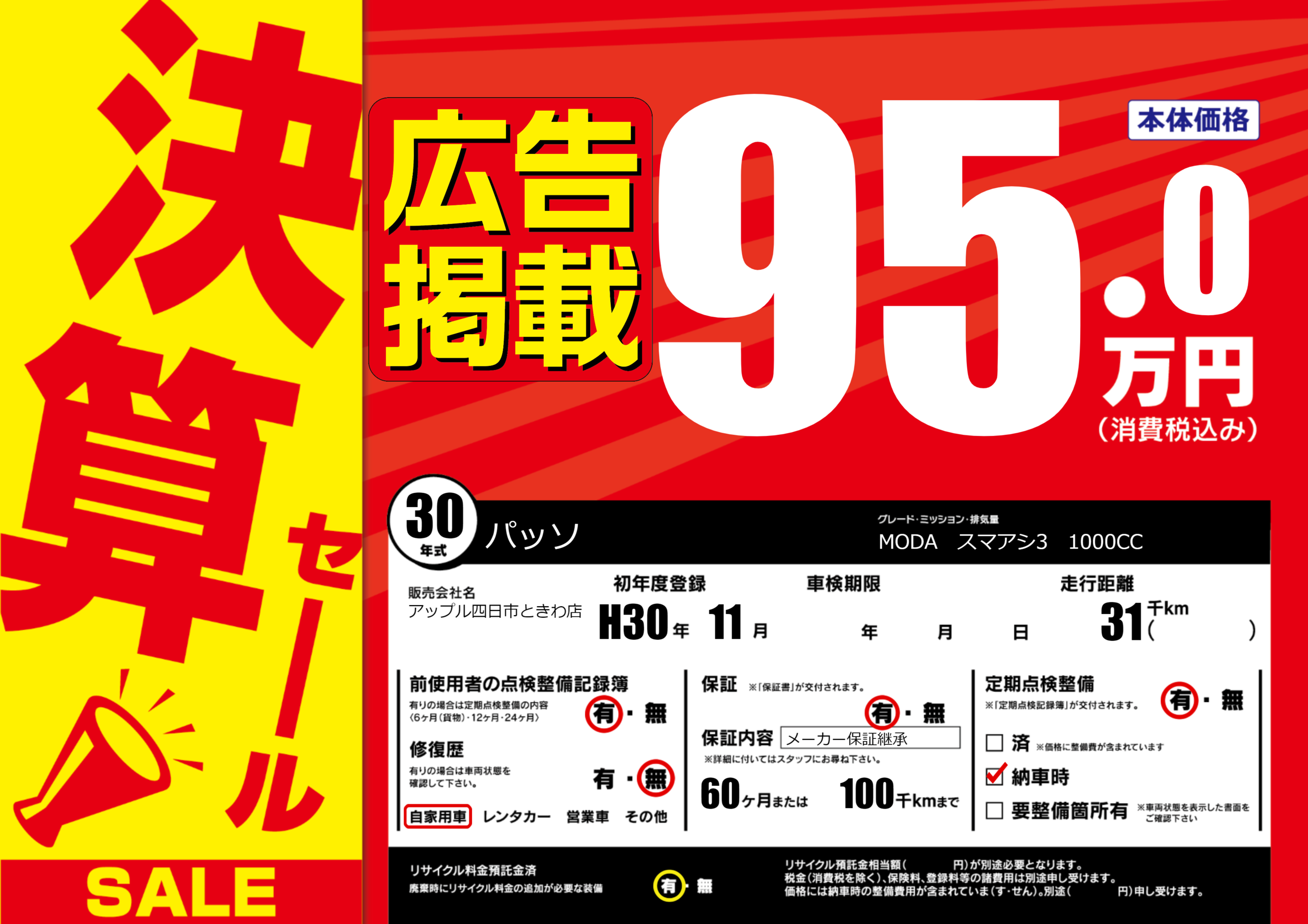 | 定期点検整備 | 定期点検整備あり 納車時あり | ||