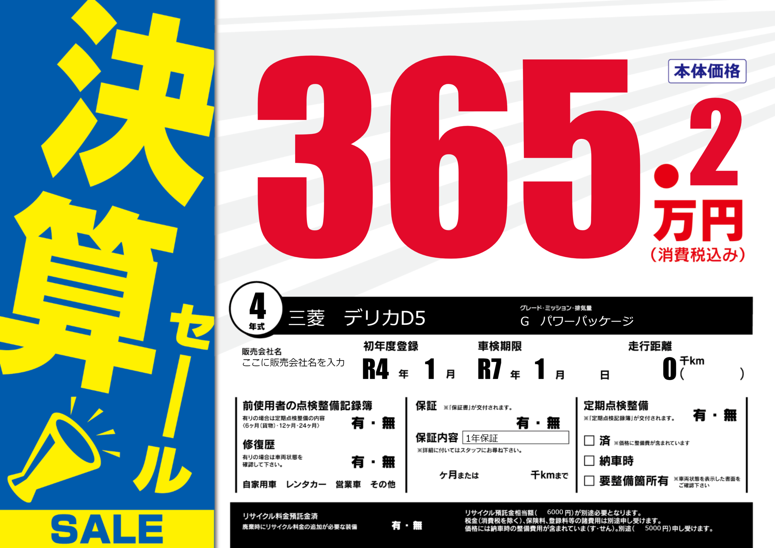 | 車名 | 三菱 デリカD5 | グレード ミッション 排気量 |