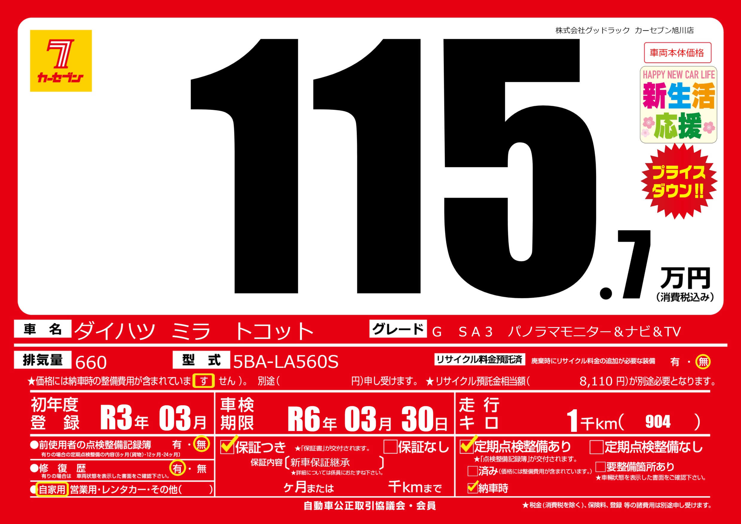 | 車検制限 | R6年 03月 30日 | ||