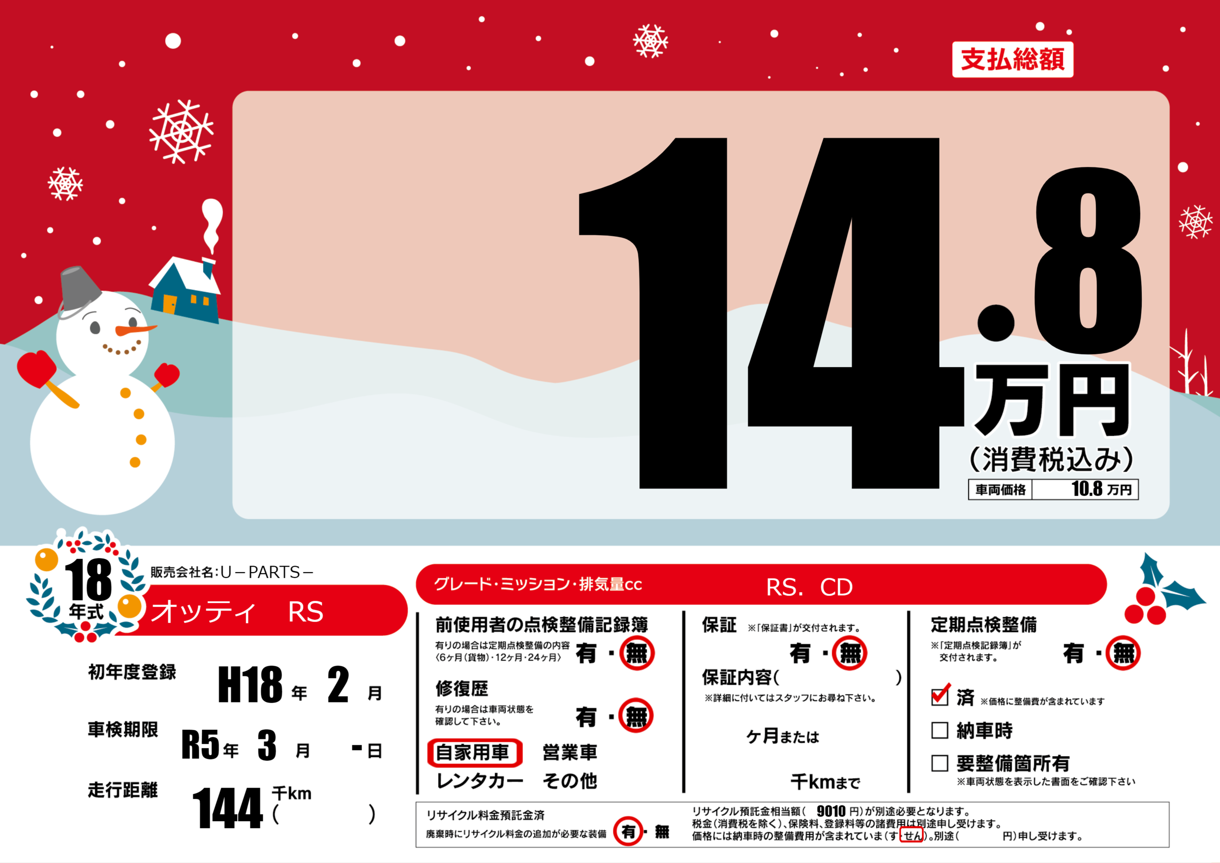 | 定期点検整備 | 定期点検整備なし 定期点検整備済み | ||