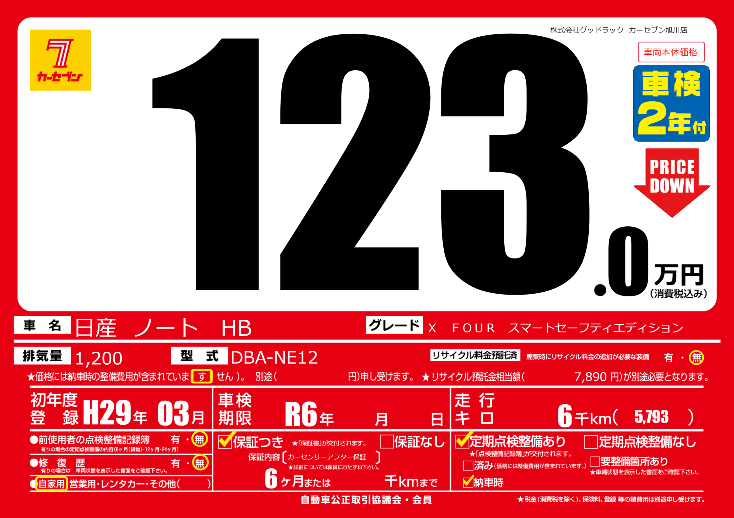 | 走行キロ | 0.6万km | 初年度登録 | H29年03月 |