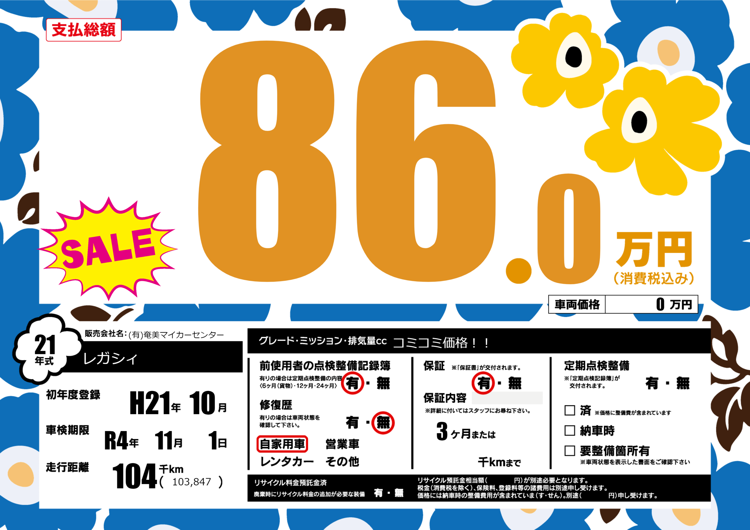 なし | 車検制限 | R4年11月1月 |