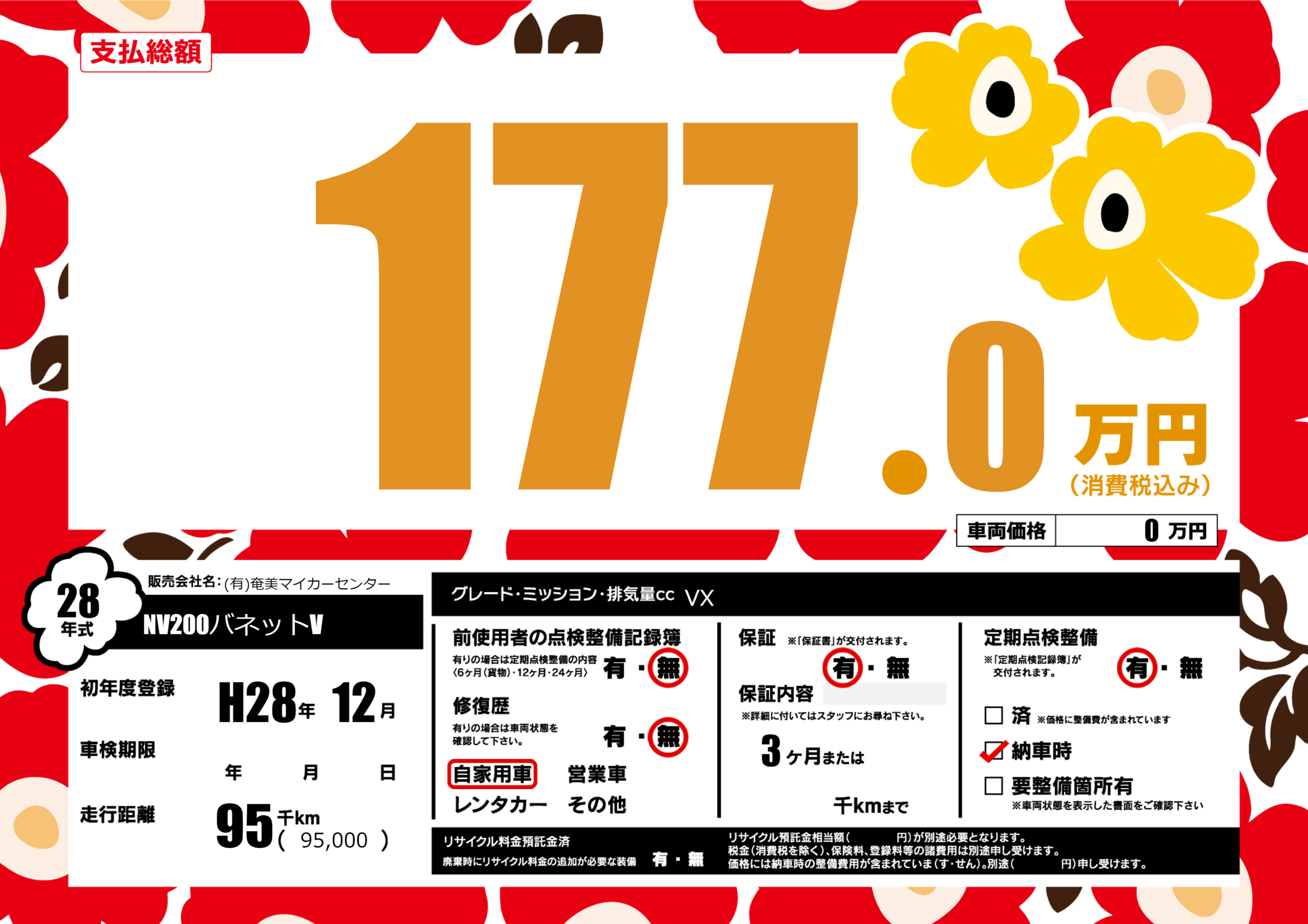 | 車名 | NV200バネットV | グレード ミッション 排気量 |