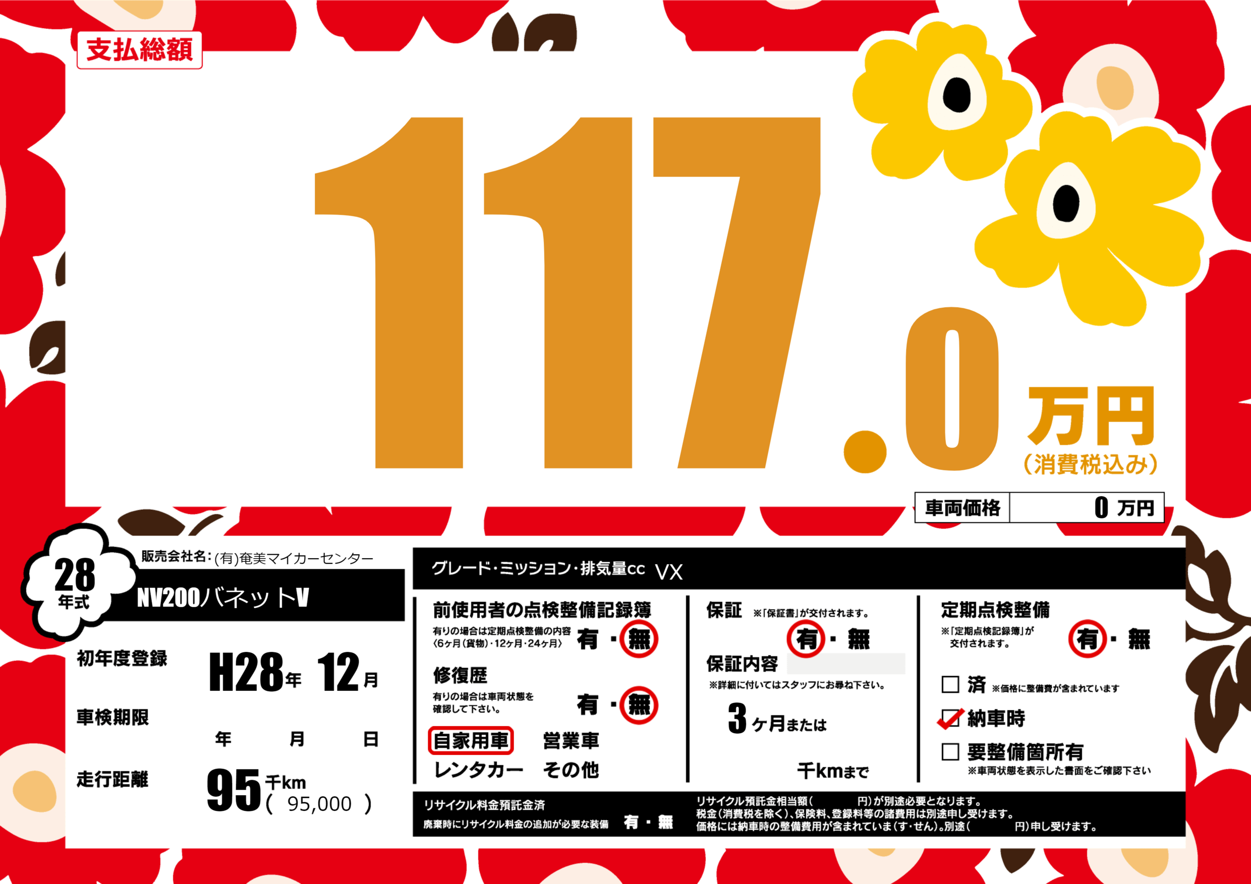 | 車名 | NV200バネットV | グレード ミッション 排気量 |