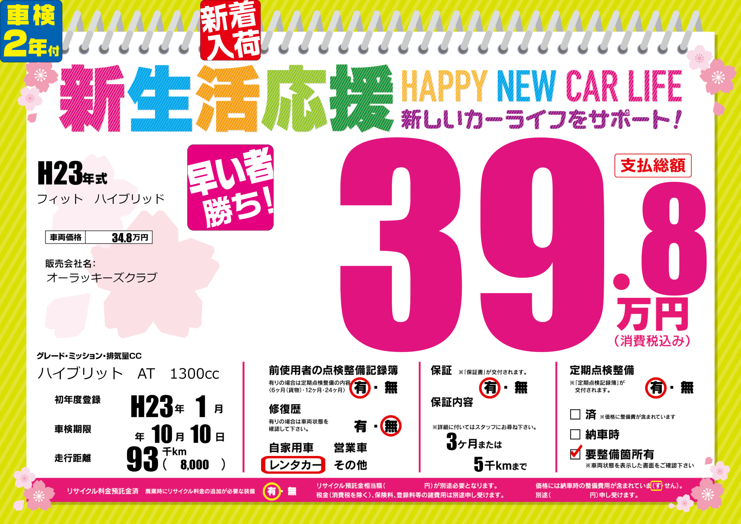 | 車検制限 | - 年 10月 10日 | ||
