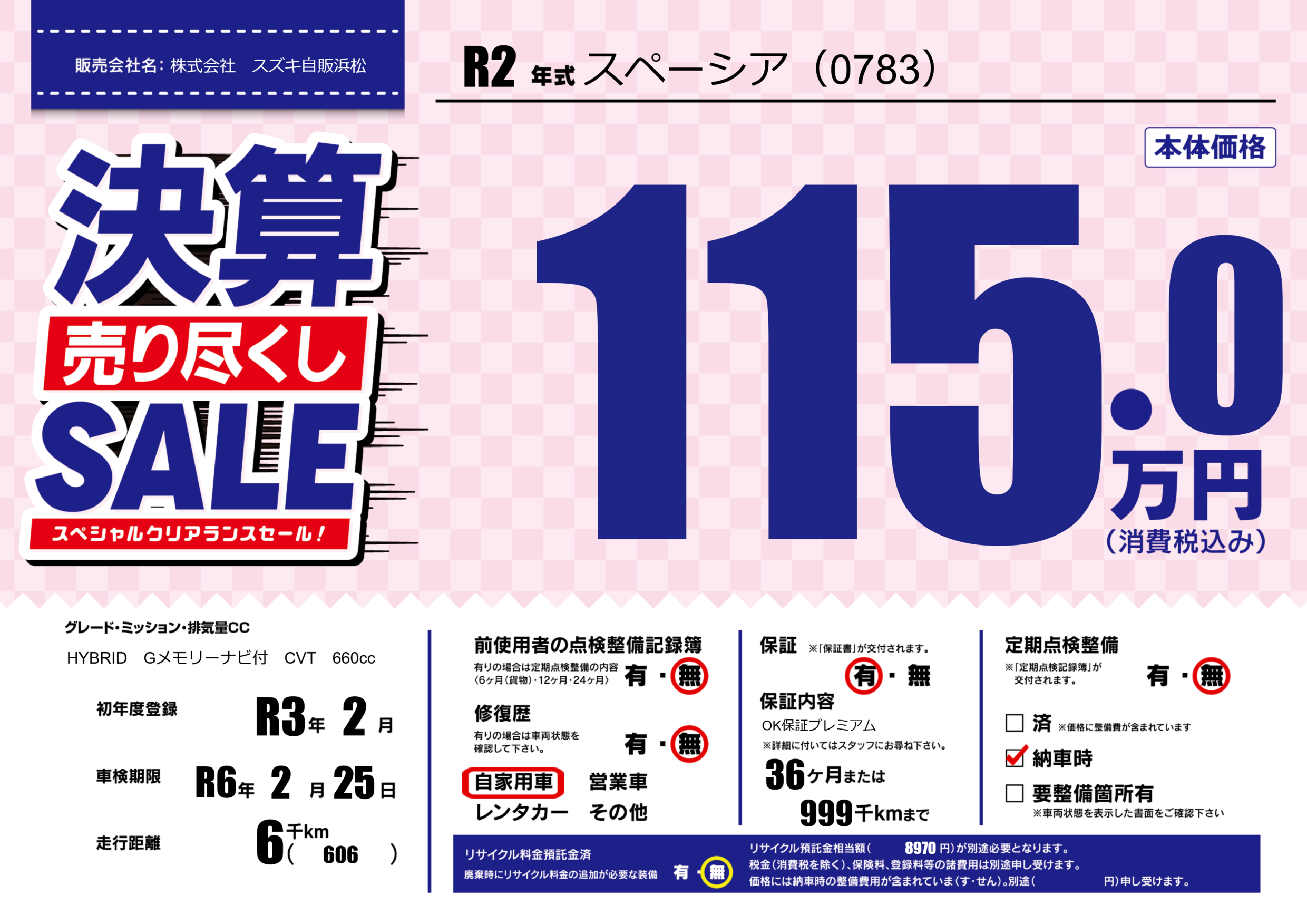 | 車名 | スペーシア(0783) | グレード ミッション 排気量 |