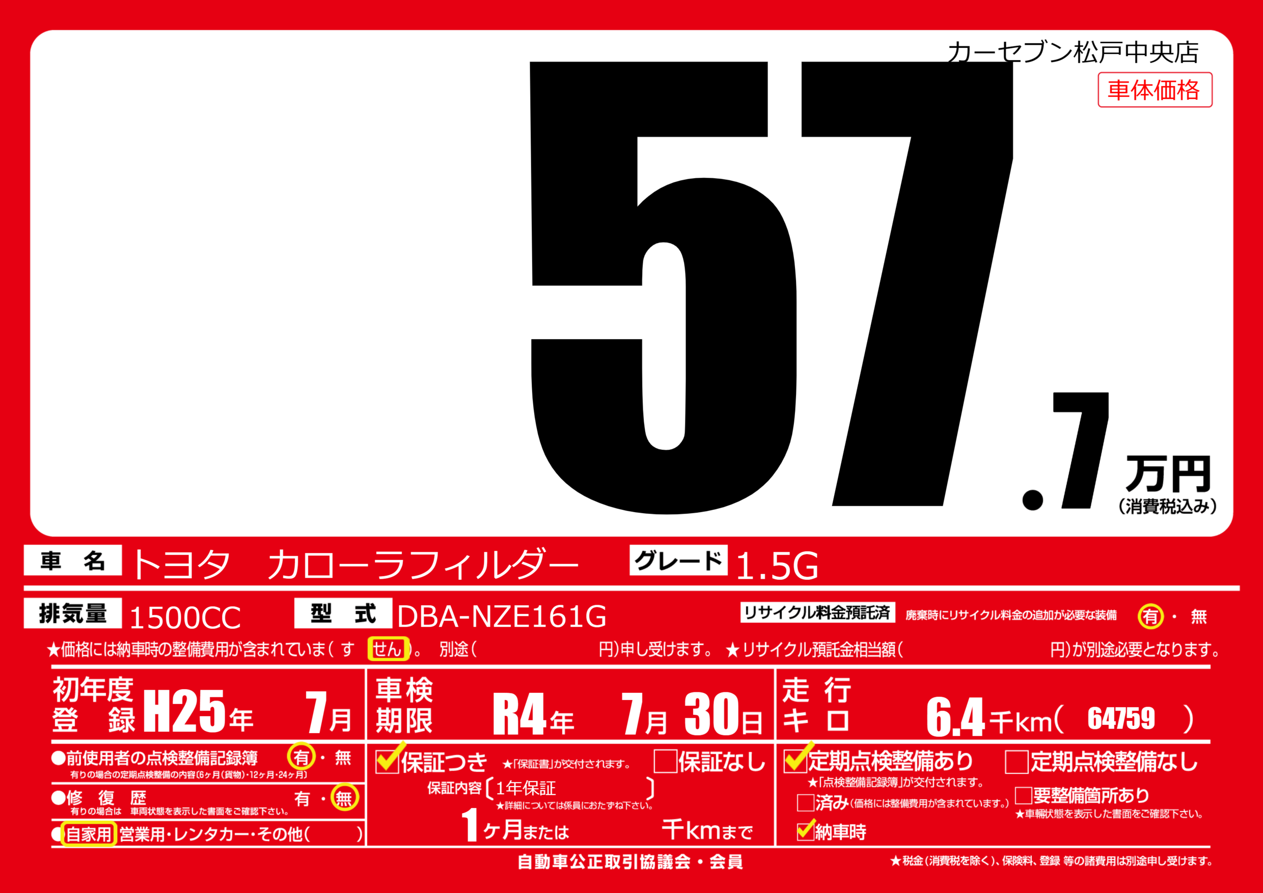 なし | 車検制限 | R4年7月30月 |