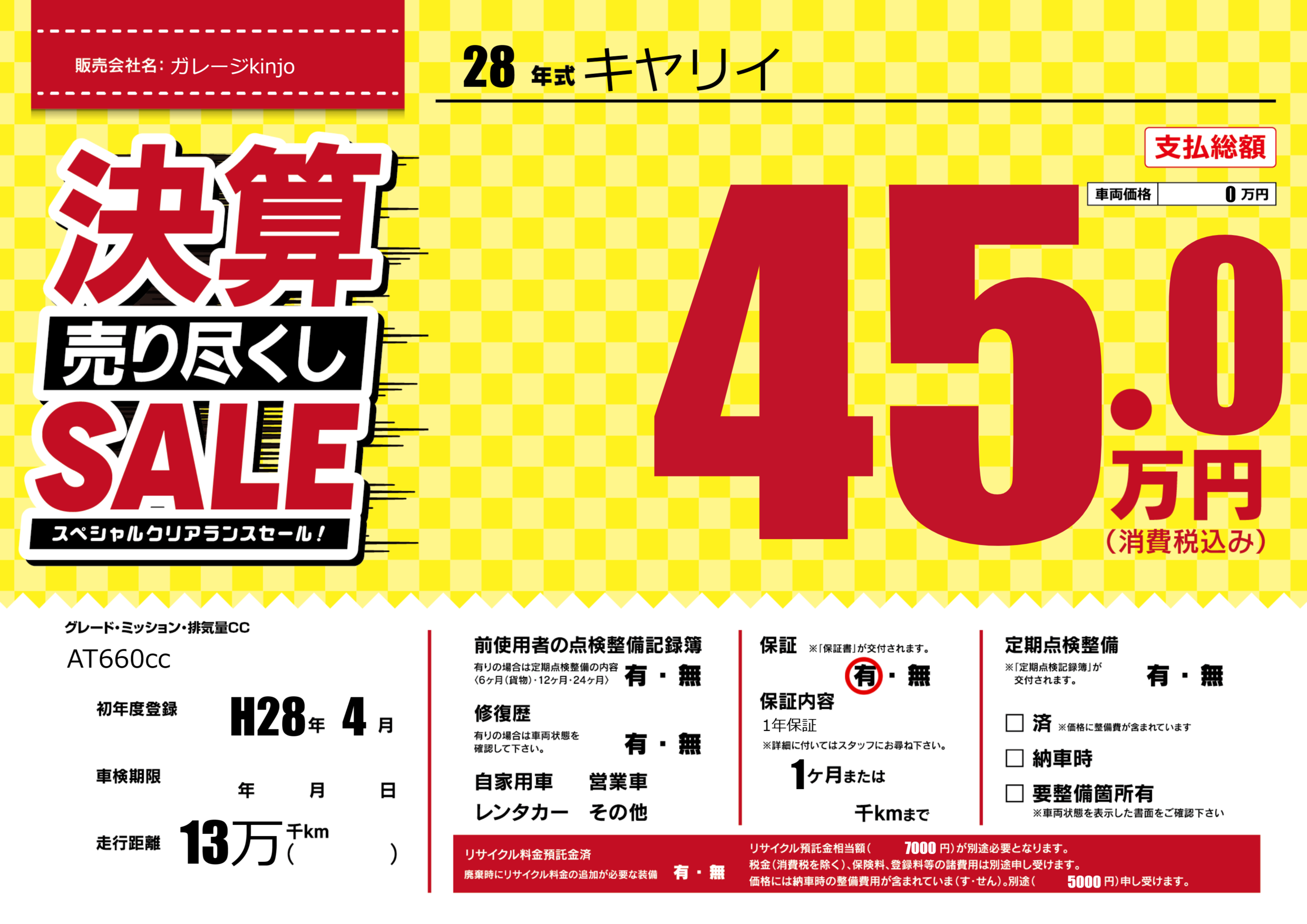 保証付き 保証内容(1年保証) 1ヶ月または()千kmまで |