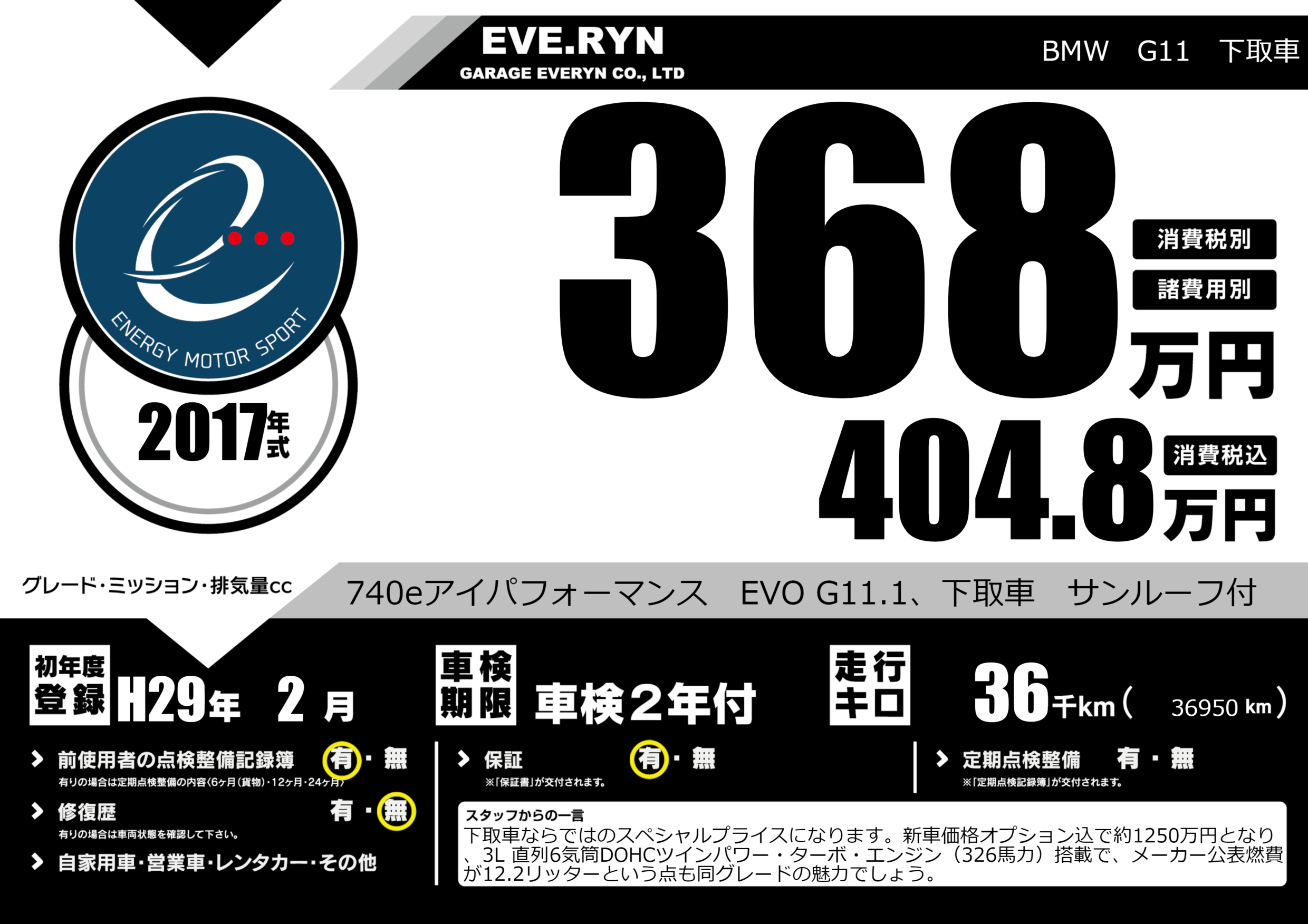 740eアイパフォーマンス EVO G11.1、下取車 サンルーフ付 |