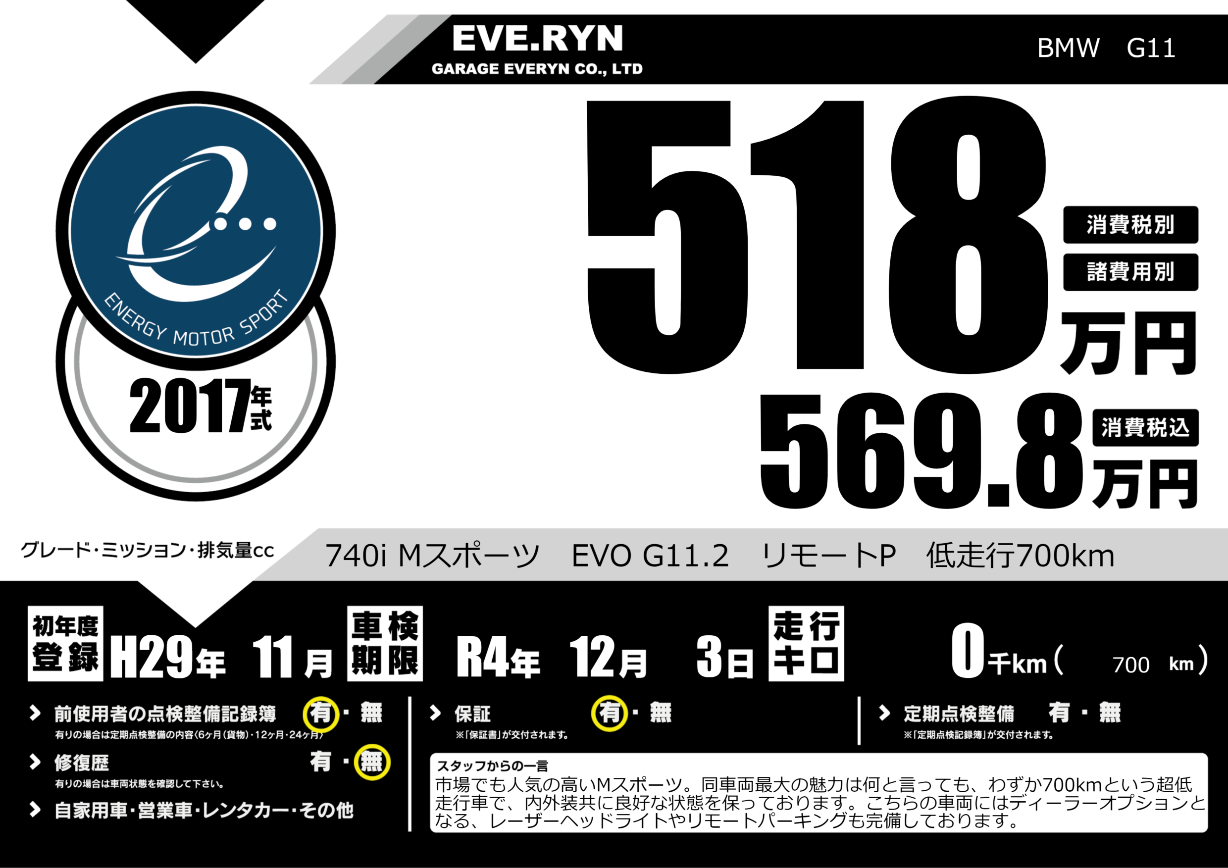 740i Mスポーツ EVO G11.2 リモートP 低走行700km |