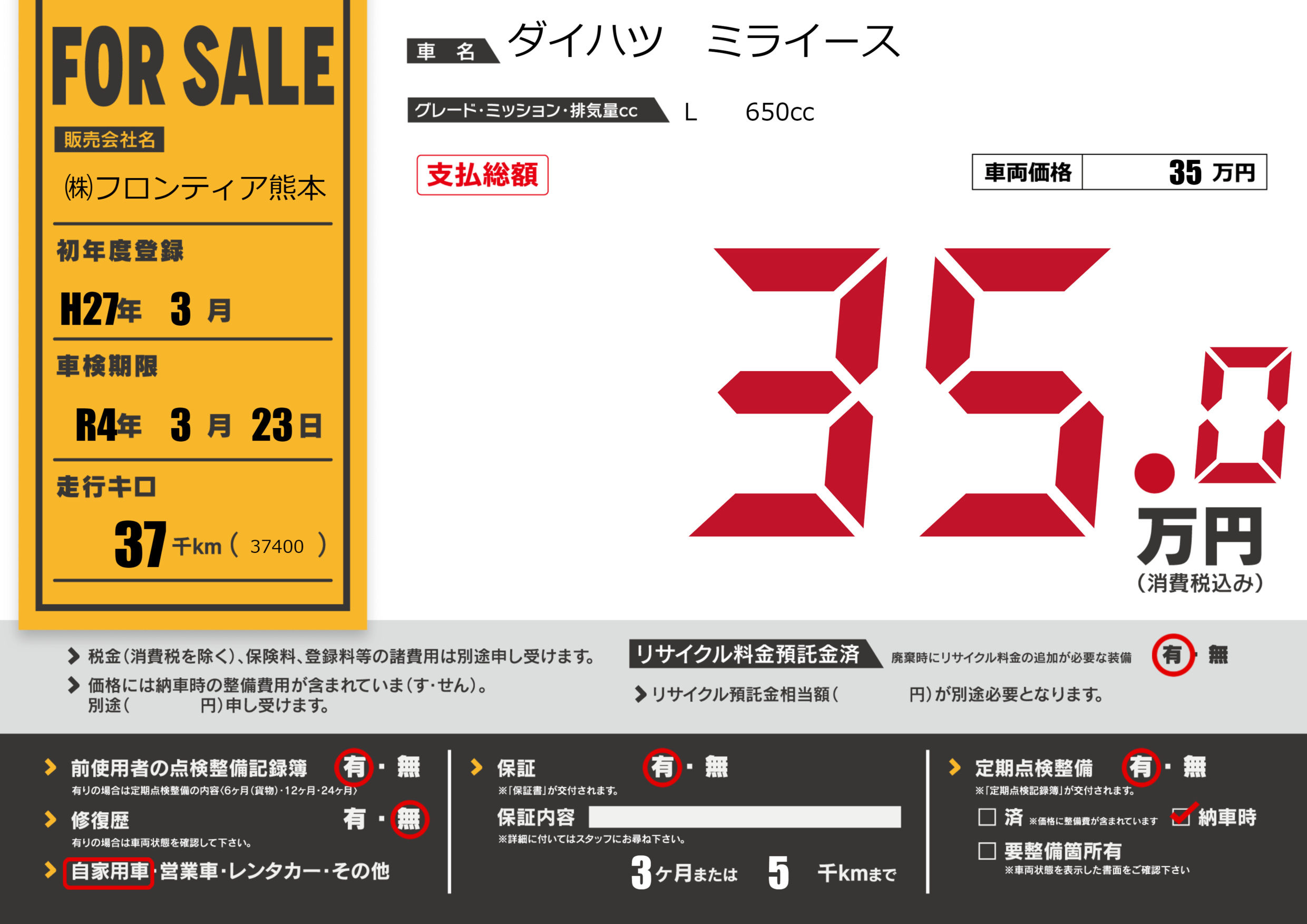 保証付き 保証内容(---) 3ヶ月または(5)千kmまで |