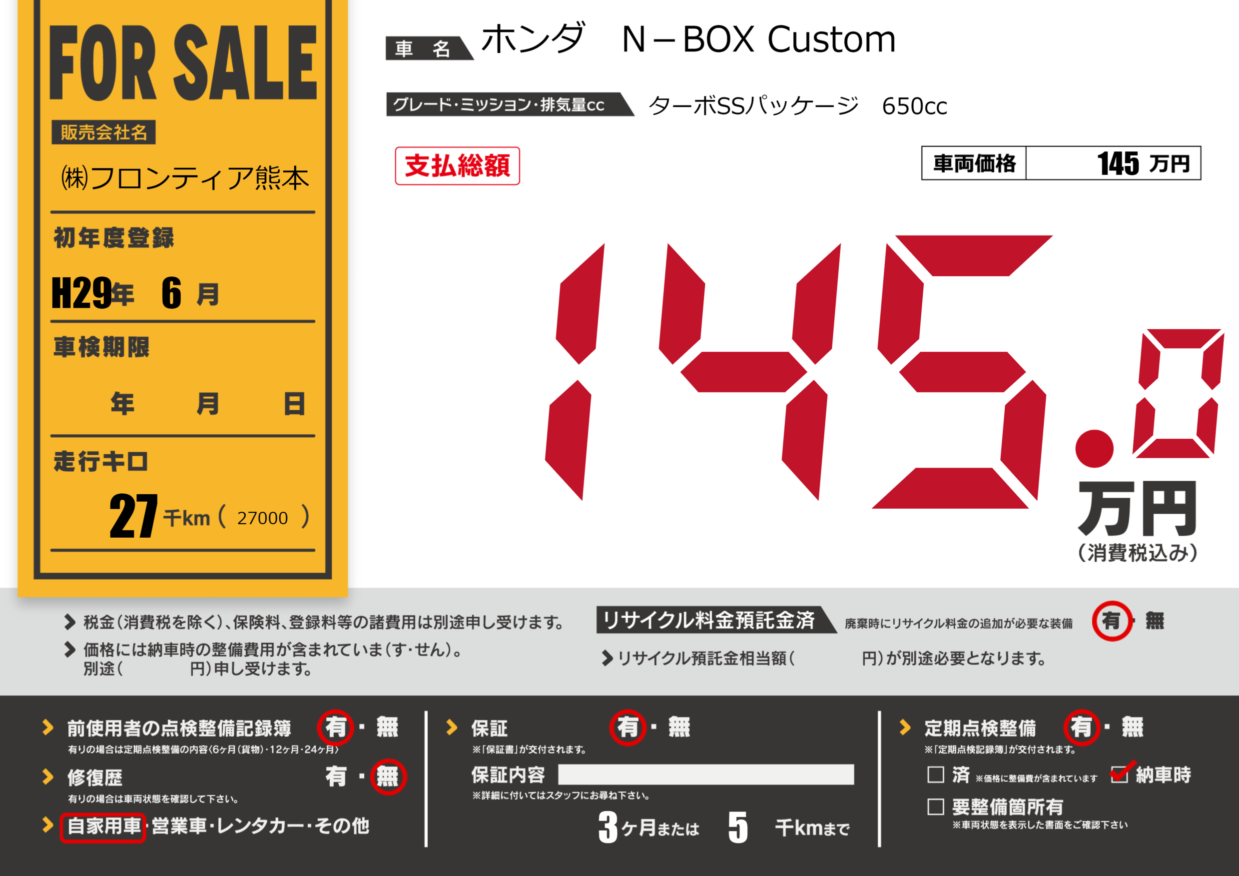保証付き 保証内容(---) 3ヶ月または(5)千kmまで |