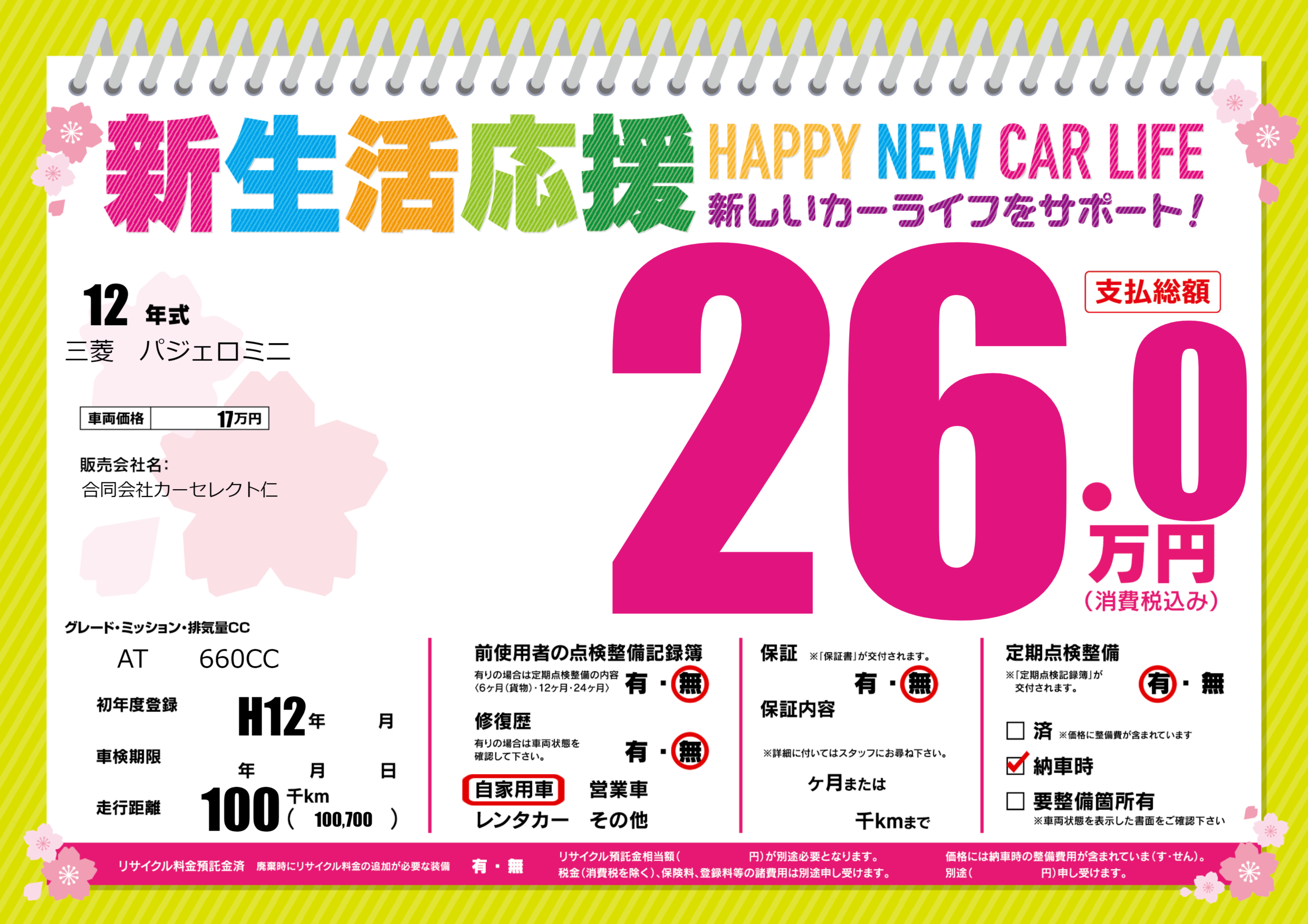 | 車名 | 三菱 パジェロミニ(売約済) | グレード ミッション 排気量 |