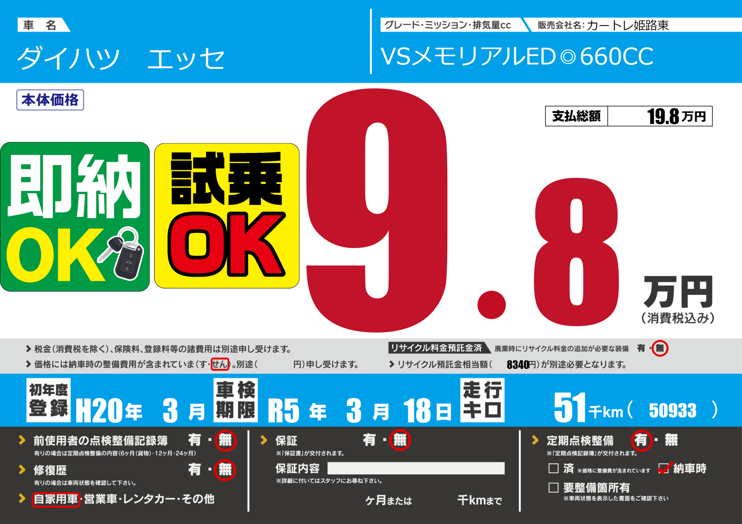 なし | 車検制限 | R5年3月18月 |