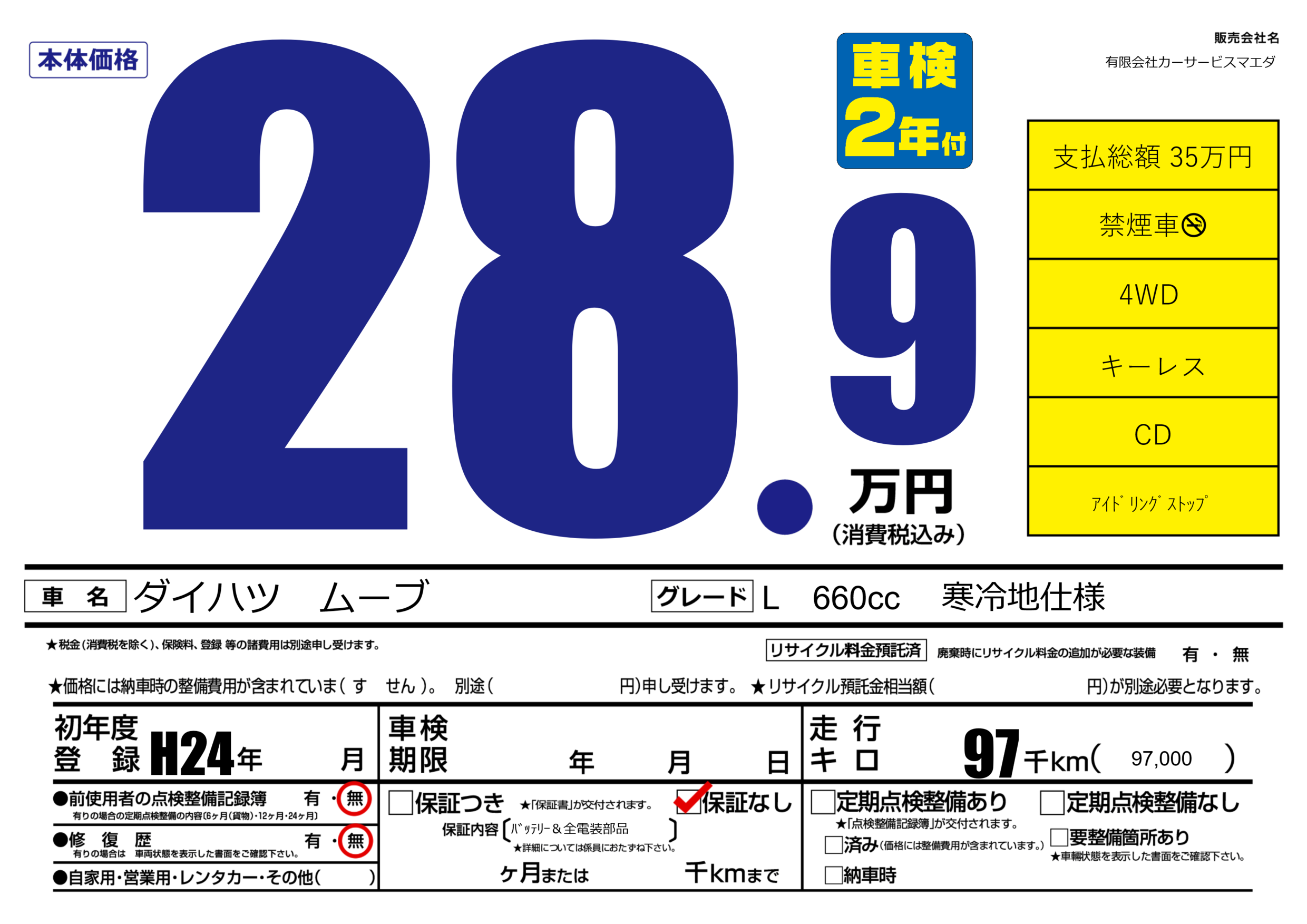 保証なし 保証内容(バッテリー&全電装部品) ---ヶ月または()千kmまで |