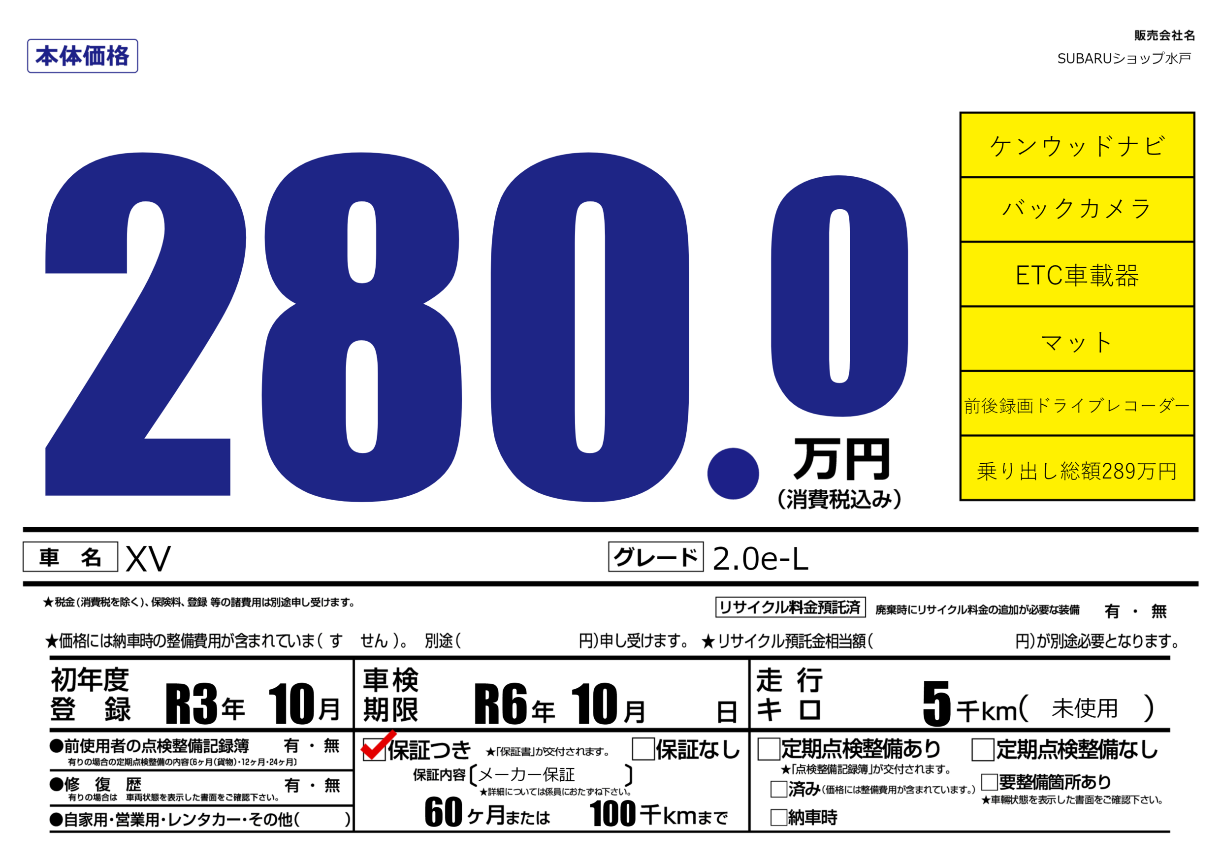 | 車検制限 | R6年 10月 - 日 | ||