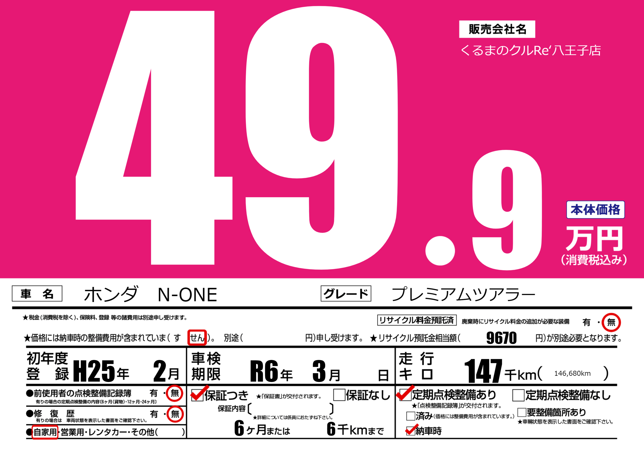 なし | 車検制限 | R6年3月---月 |