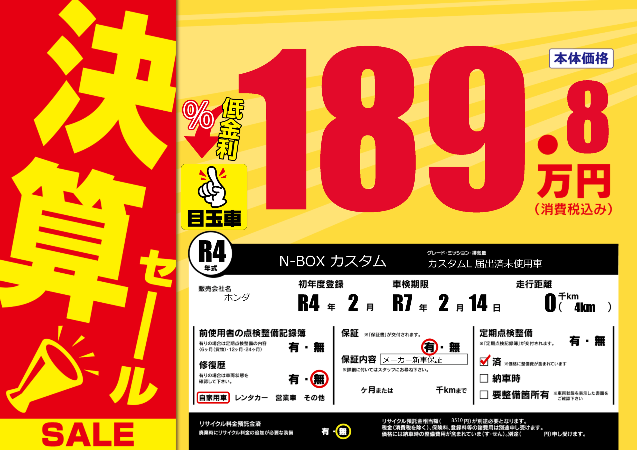 | 走行キロ | - | 初年度登録 | R4年2月 |