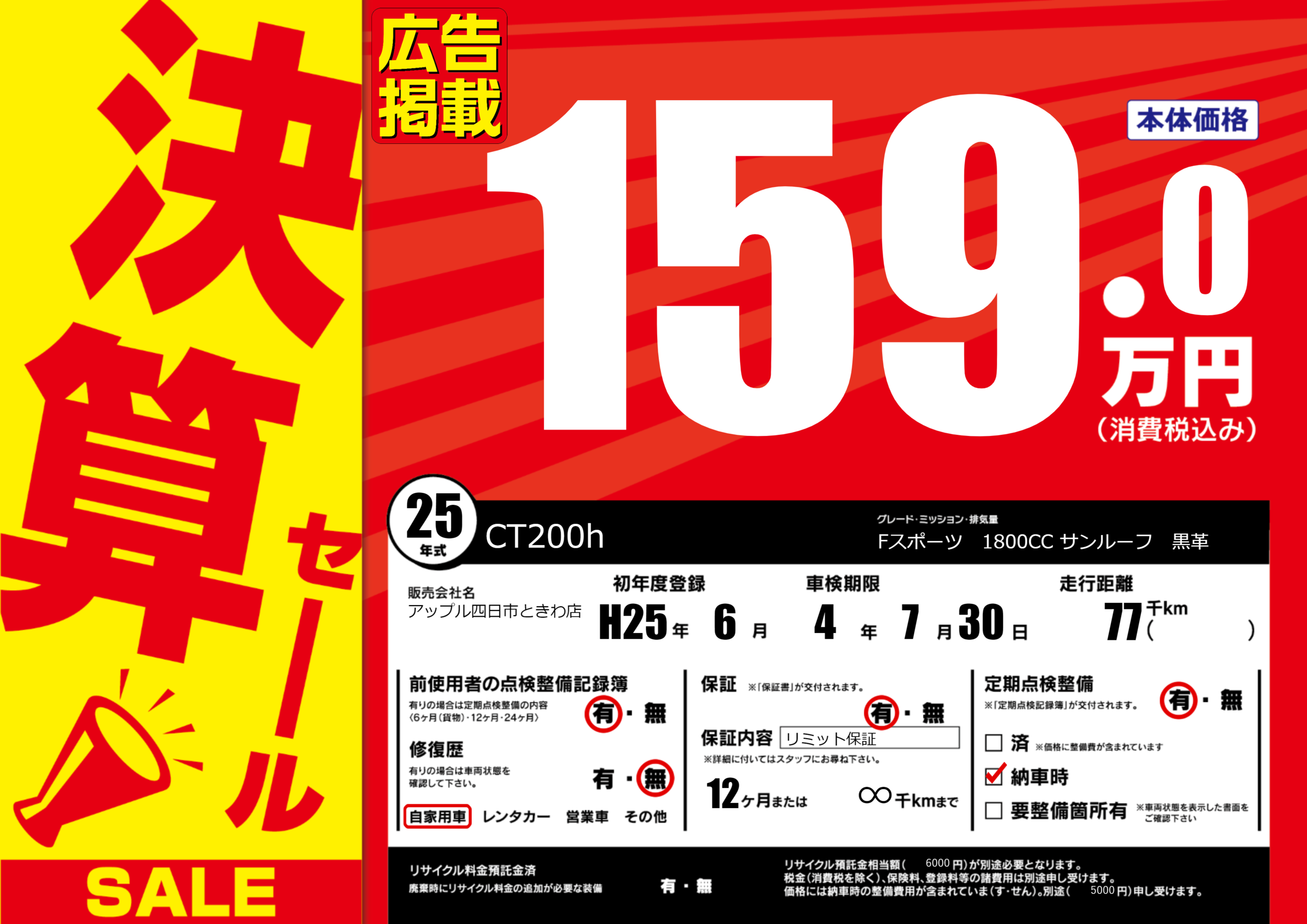 | 車名 | CT200h | グレード ミッション 排気量 |