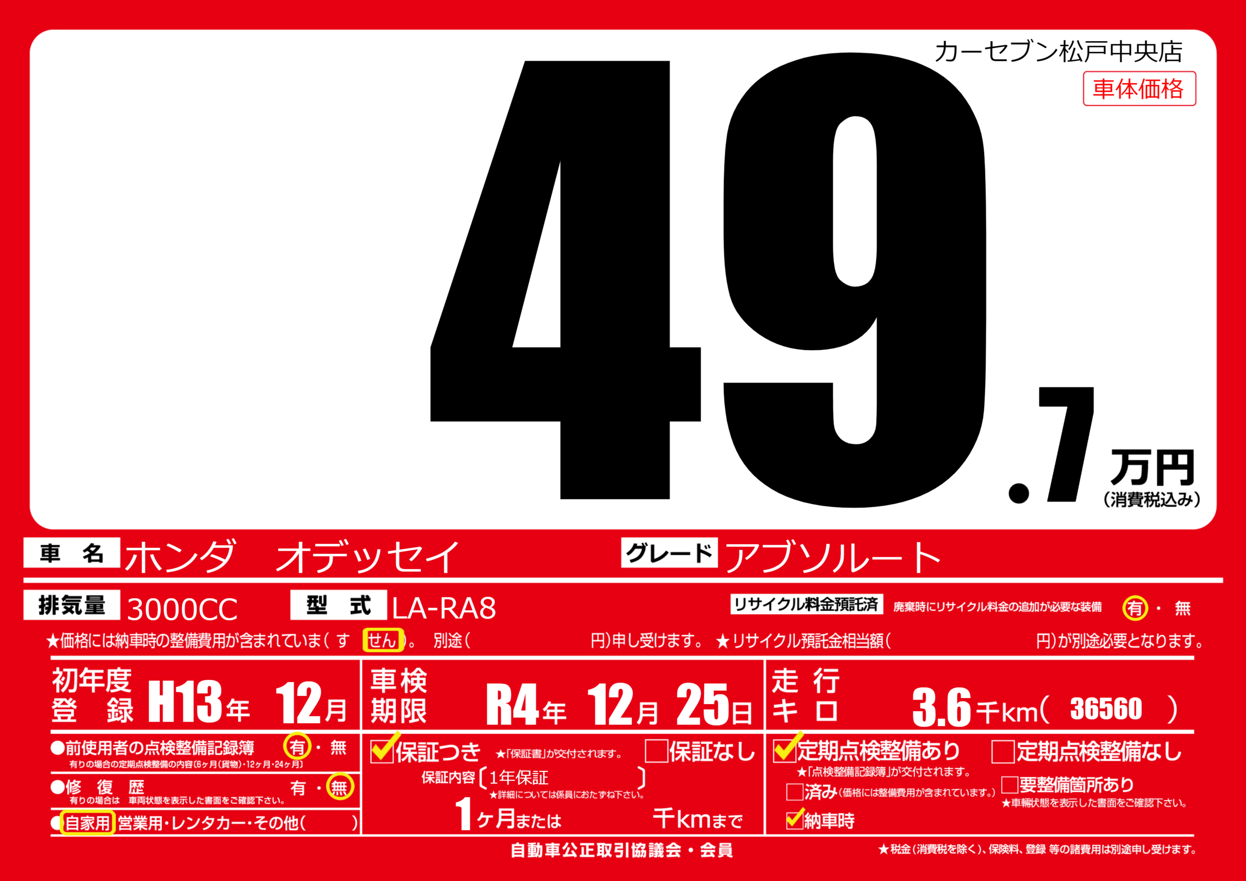 なし | 車検制限 | R4年12月25月 |