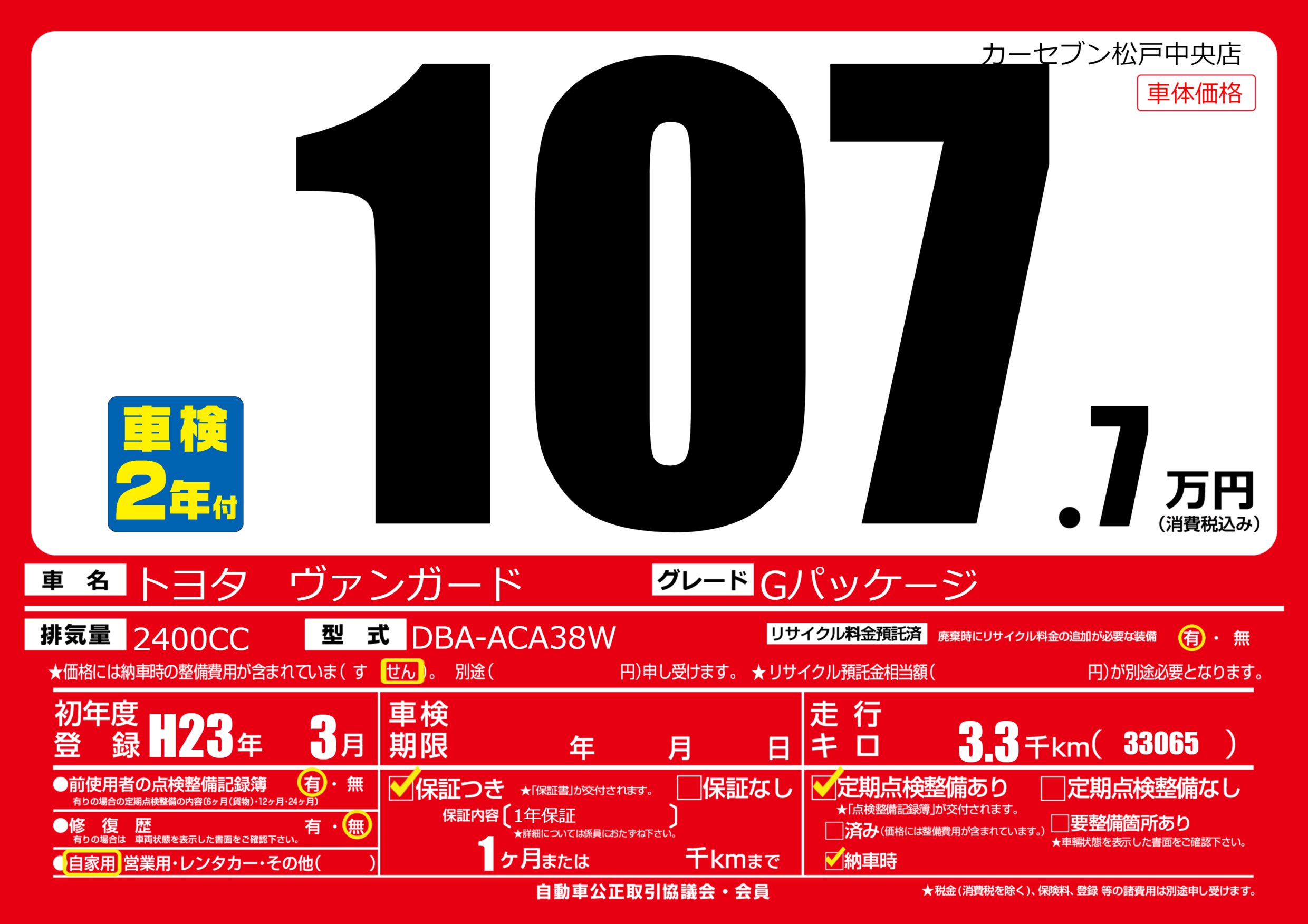| 初年度登録 | H23年3月 | ||