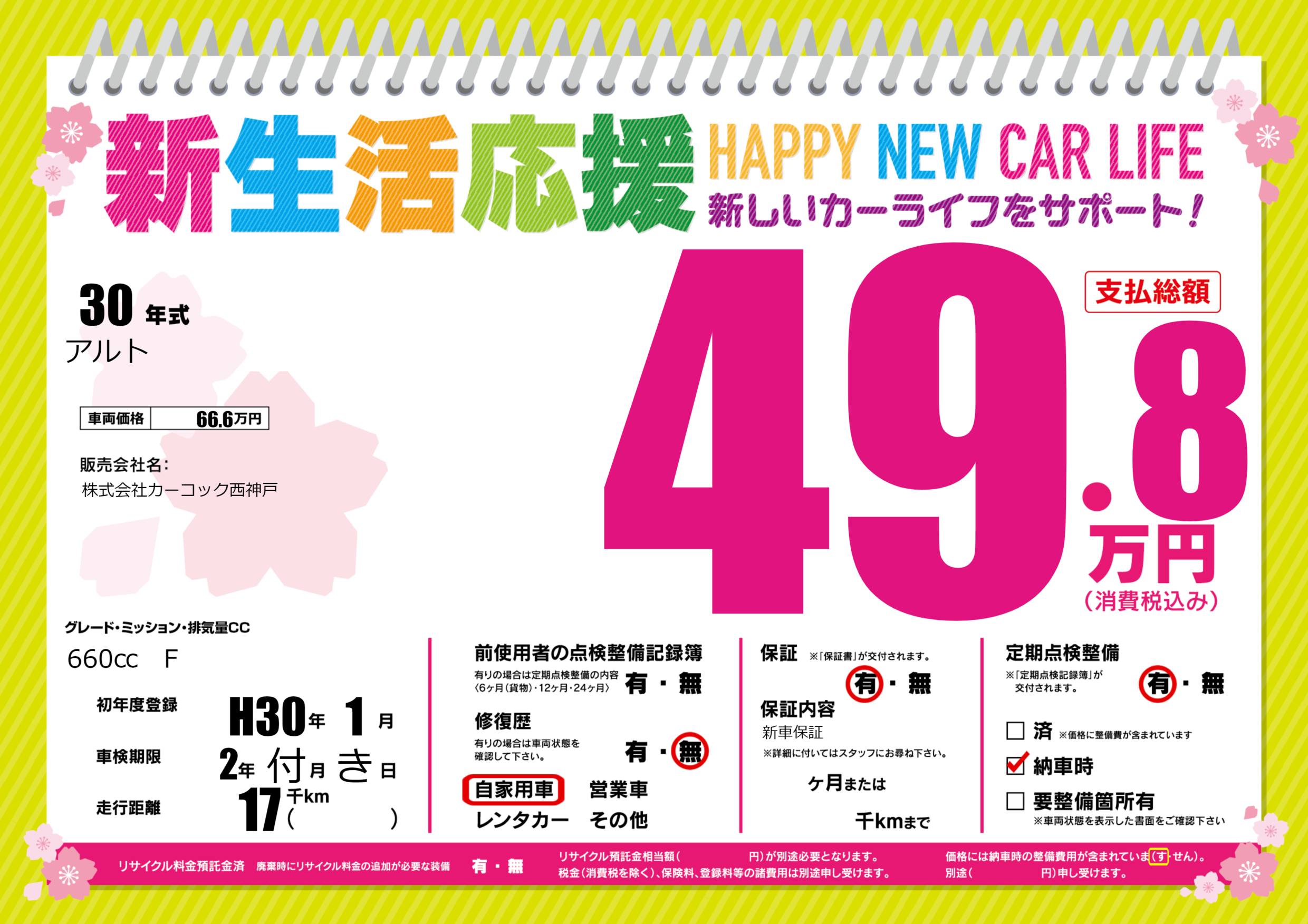 | 定期点検整備 | 定期点検整備あり 納車時あり | ||