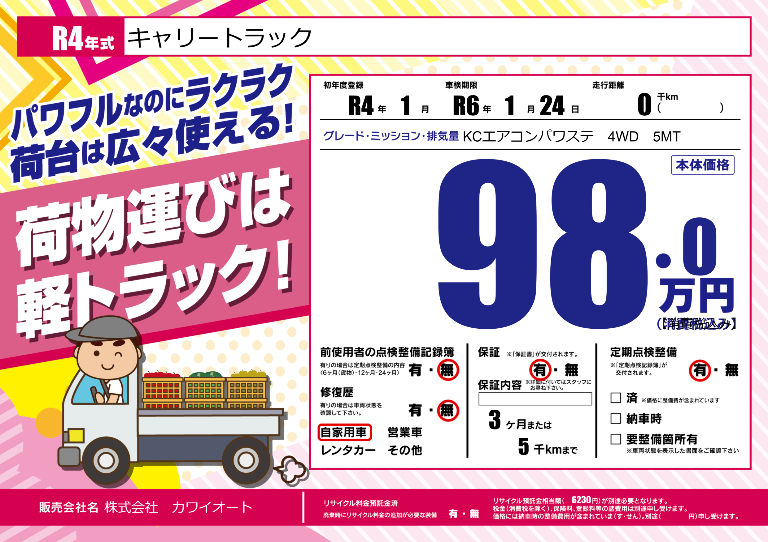 保証付き 保証内容(---) 3ヶ月または(5)千kmまで |