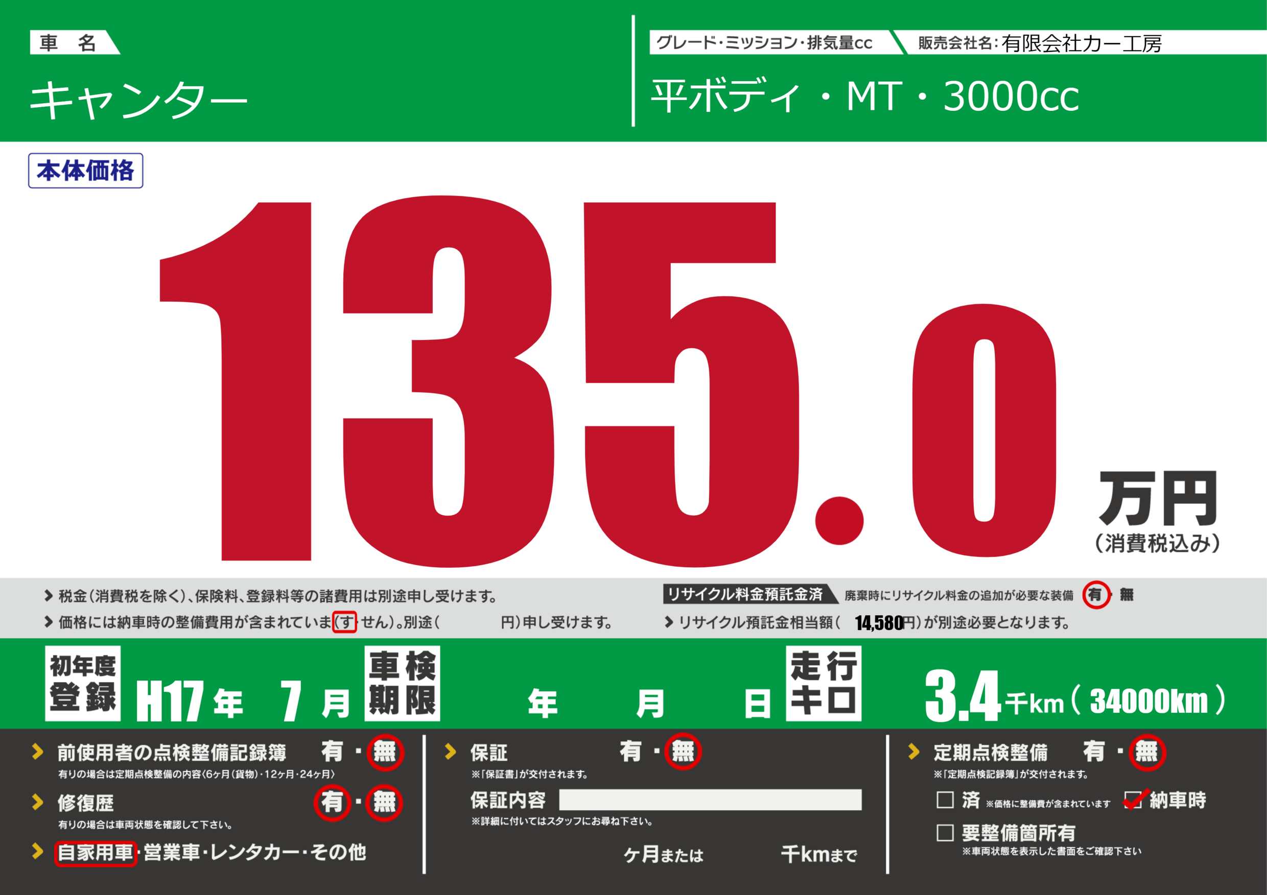 | 車検制限 | - 年 - 月 - 日 | ||
