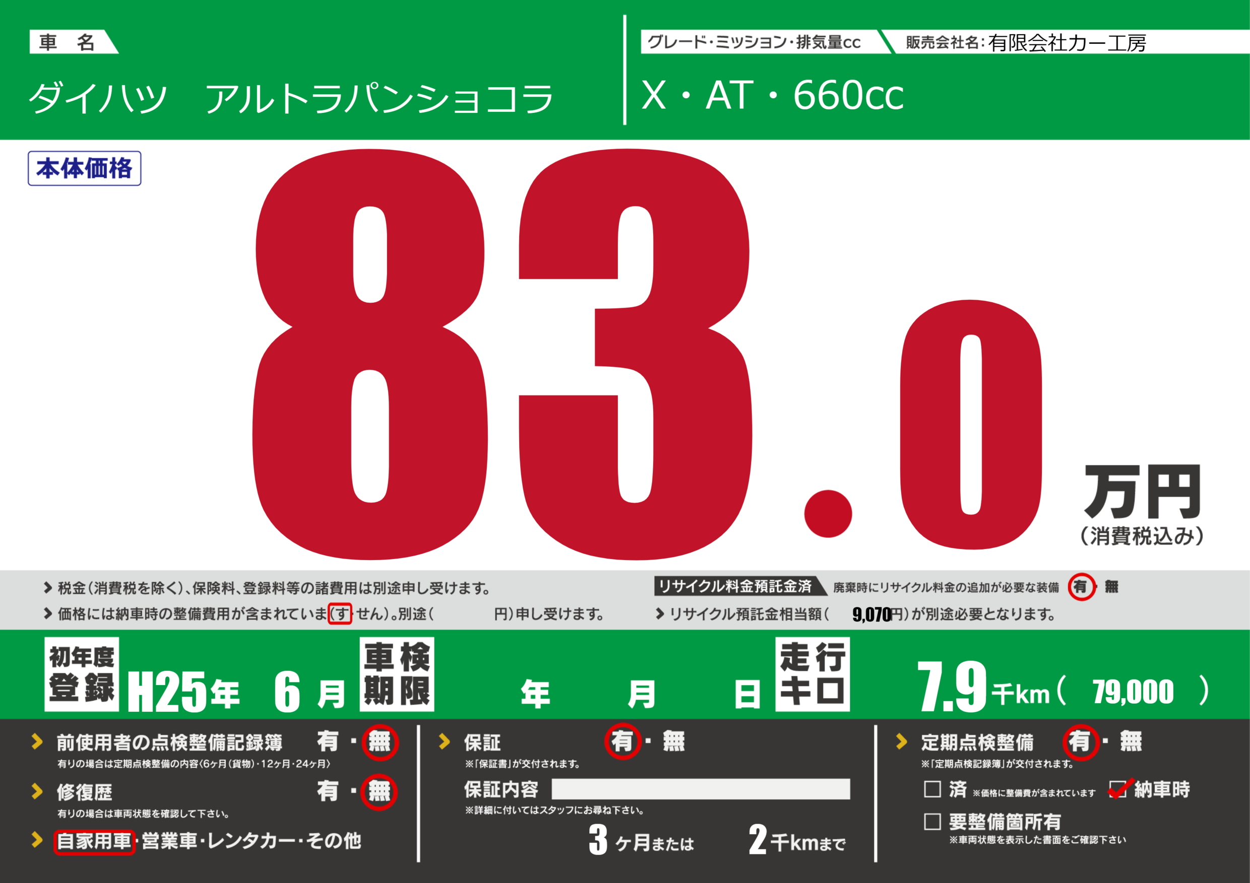 | 定期点検整備 | 定期点検整備あり 納車時あり | ||