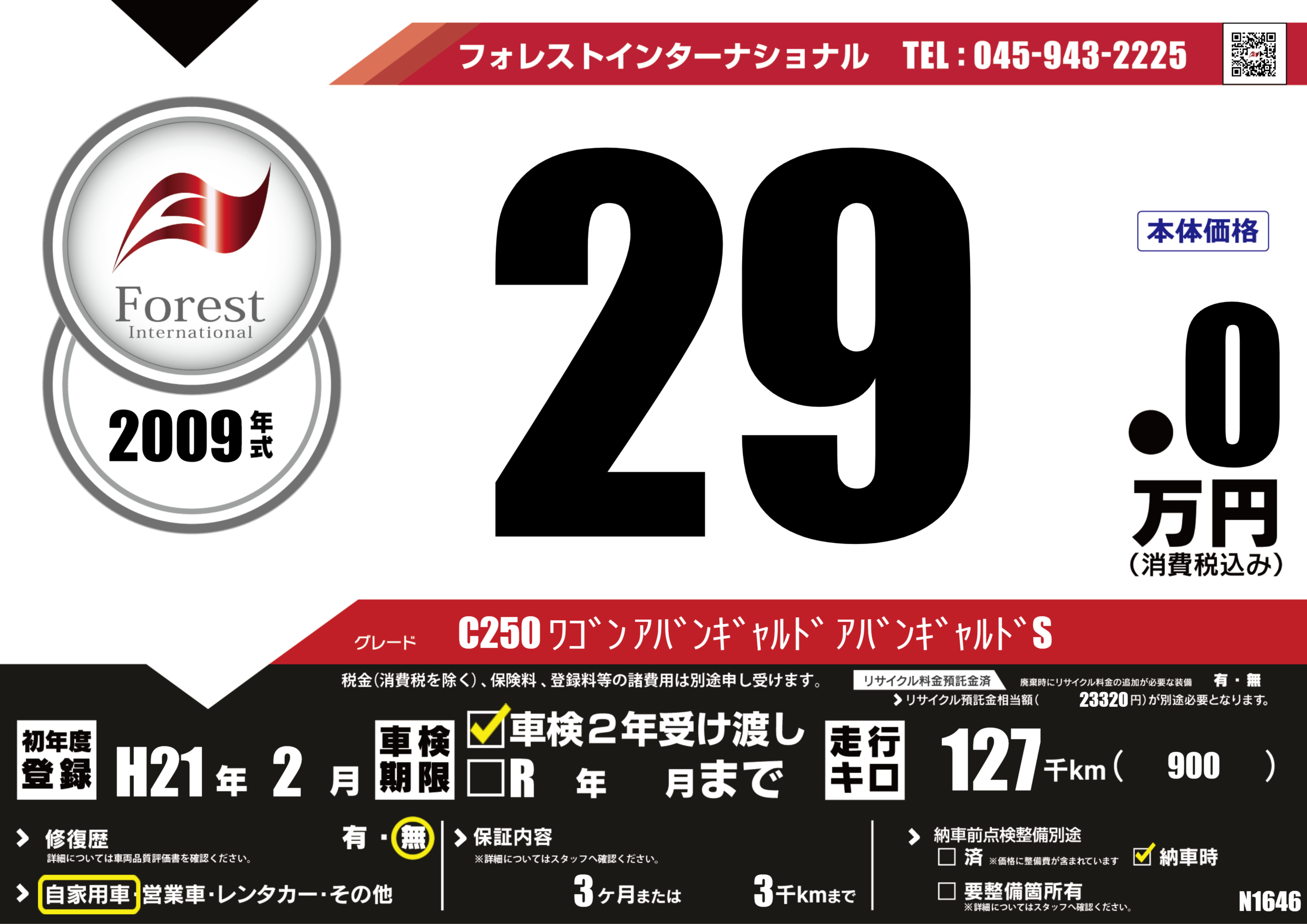 | 走行キロ | 12.7万km | 初年度登録 | H21年2月 |