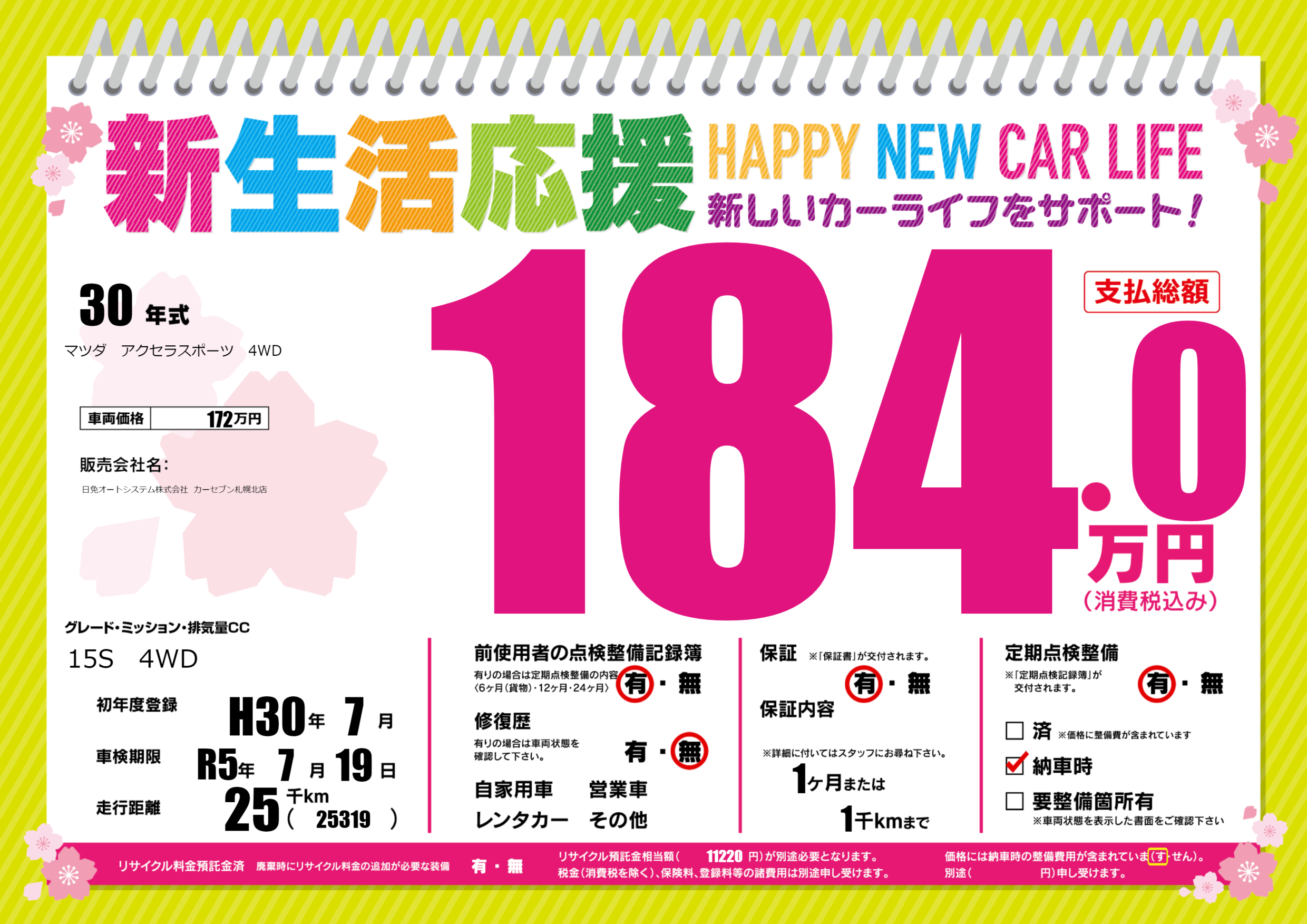 | 車名 | マツダ アクセラスポーツ 4WD | グレード ミッション 排気量 |