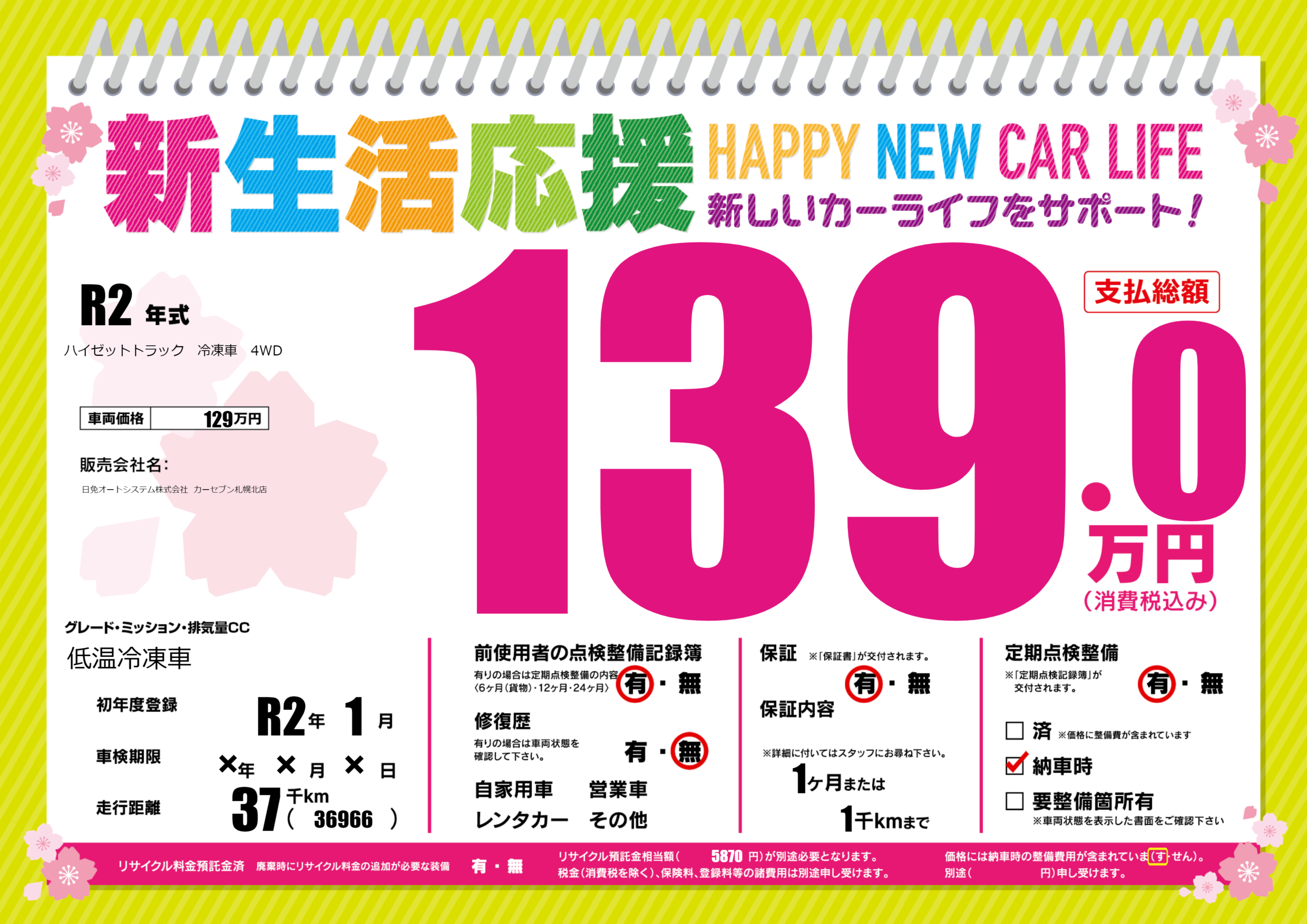 | 定期点検整備 | 定期点検整備あり 納車時あり | ||