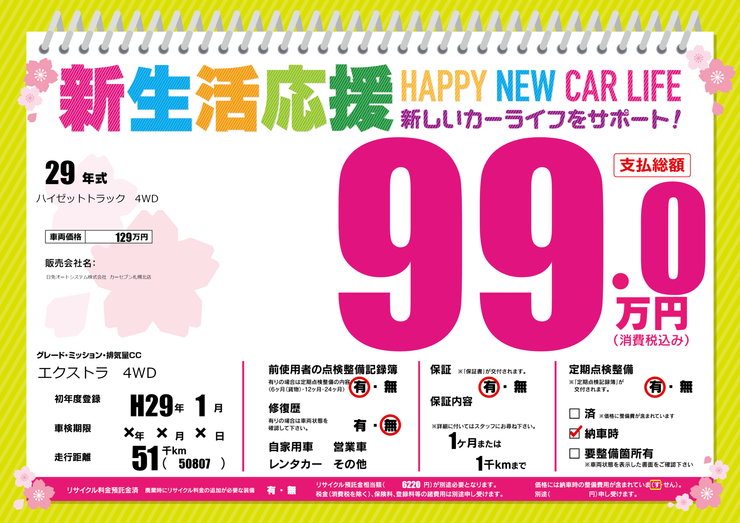 | 車名 | ハイゼットトラック 4WD | グレード ミッション 排気量 |