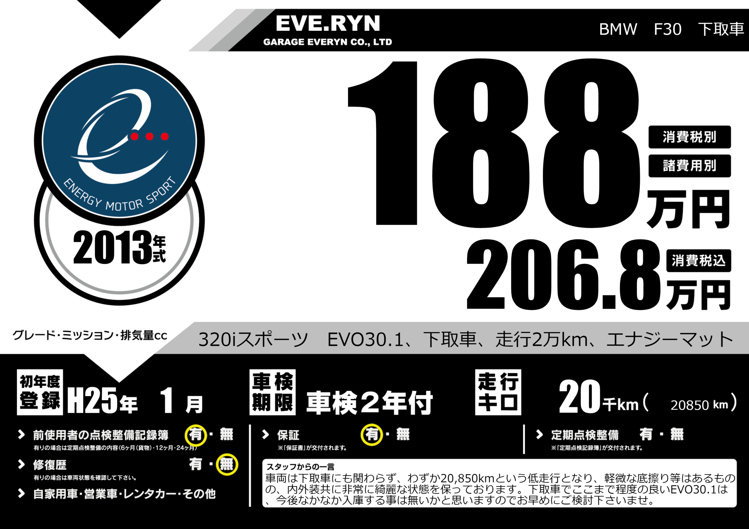 320iスポーツ EVO30.1、下取車、走行2万km、エナジーマット |