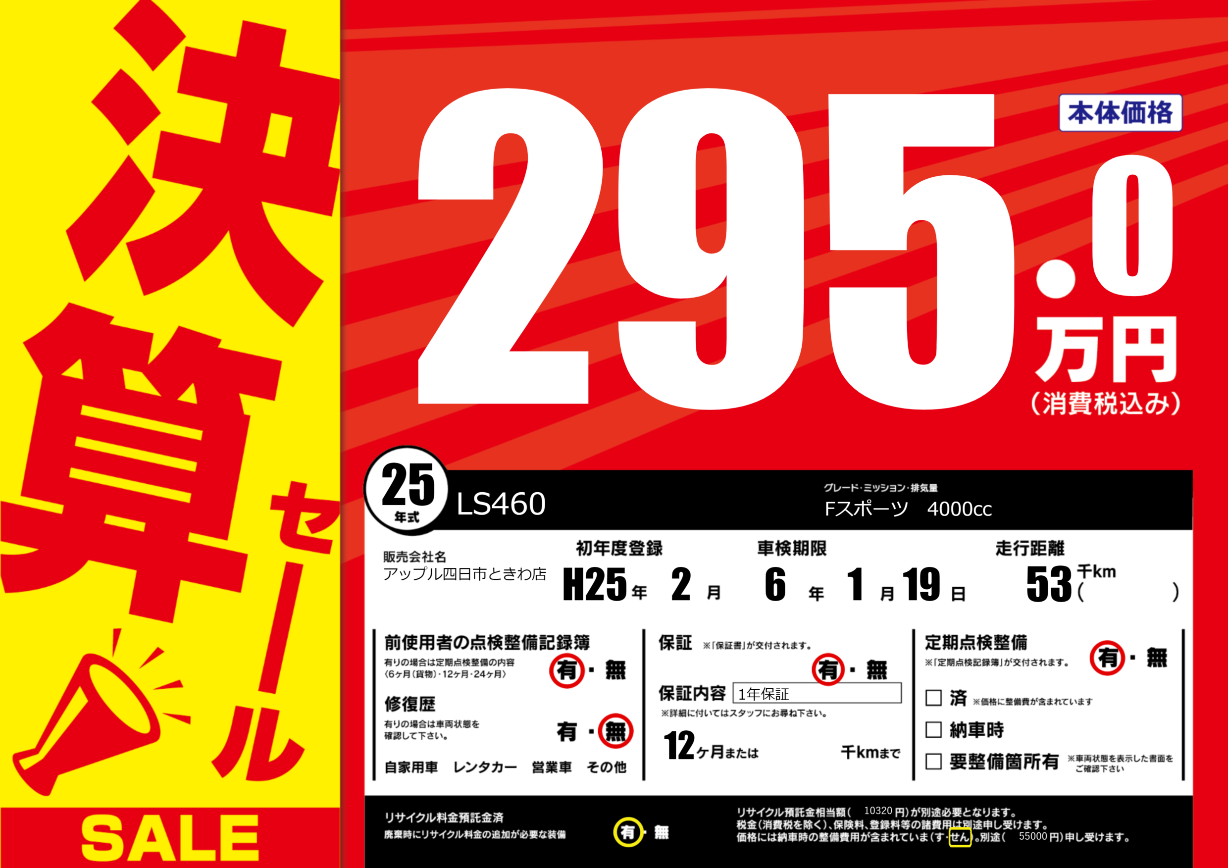 | 車名 | LS460 | グレード ミッション 排気量 |