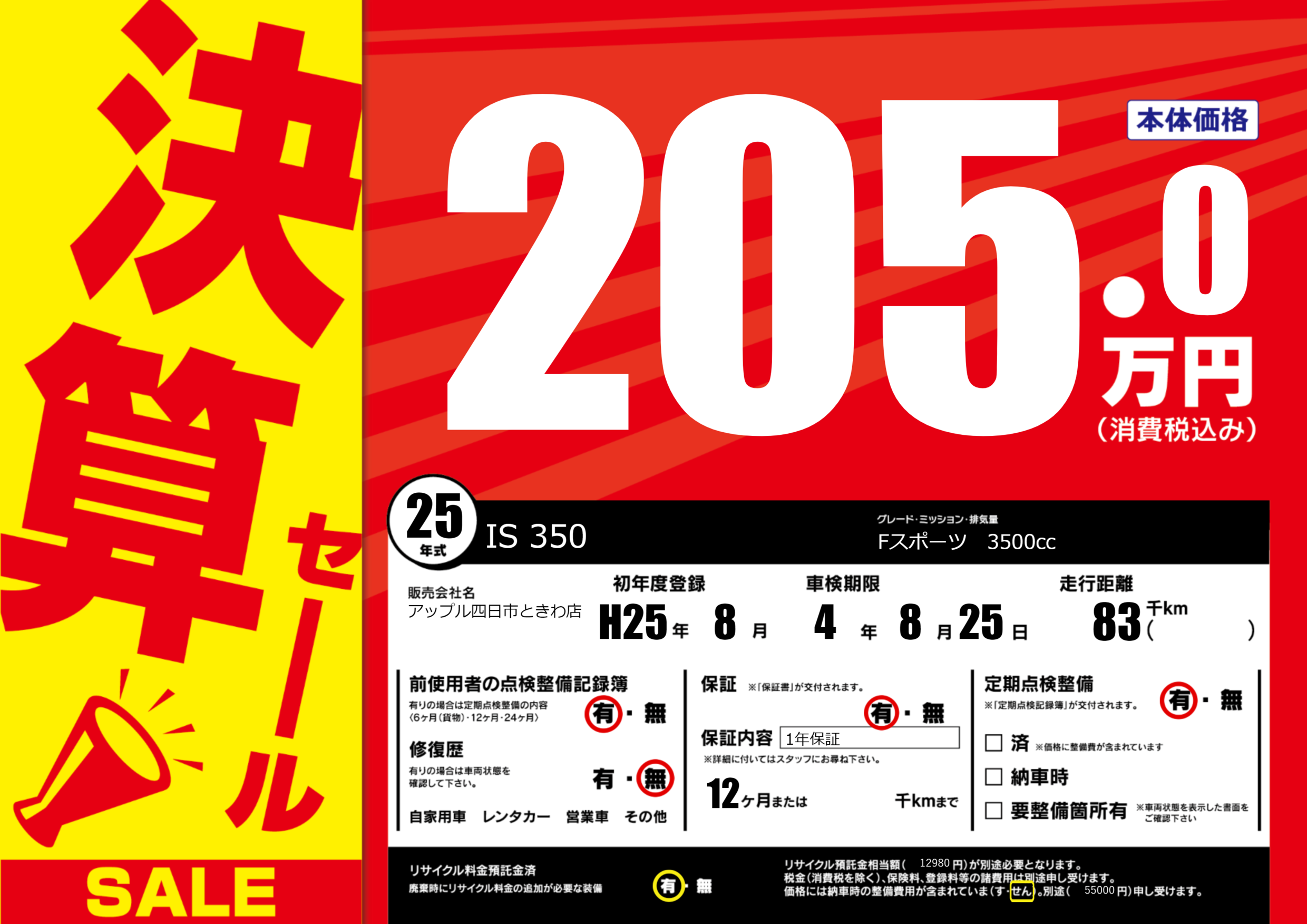 | 車名 | IS 350 | グレード ミッション 排気量 |
