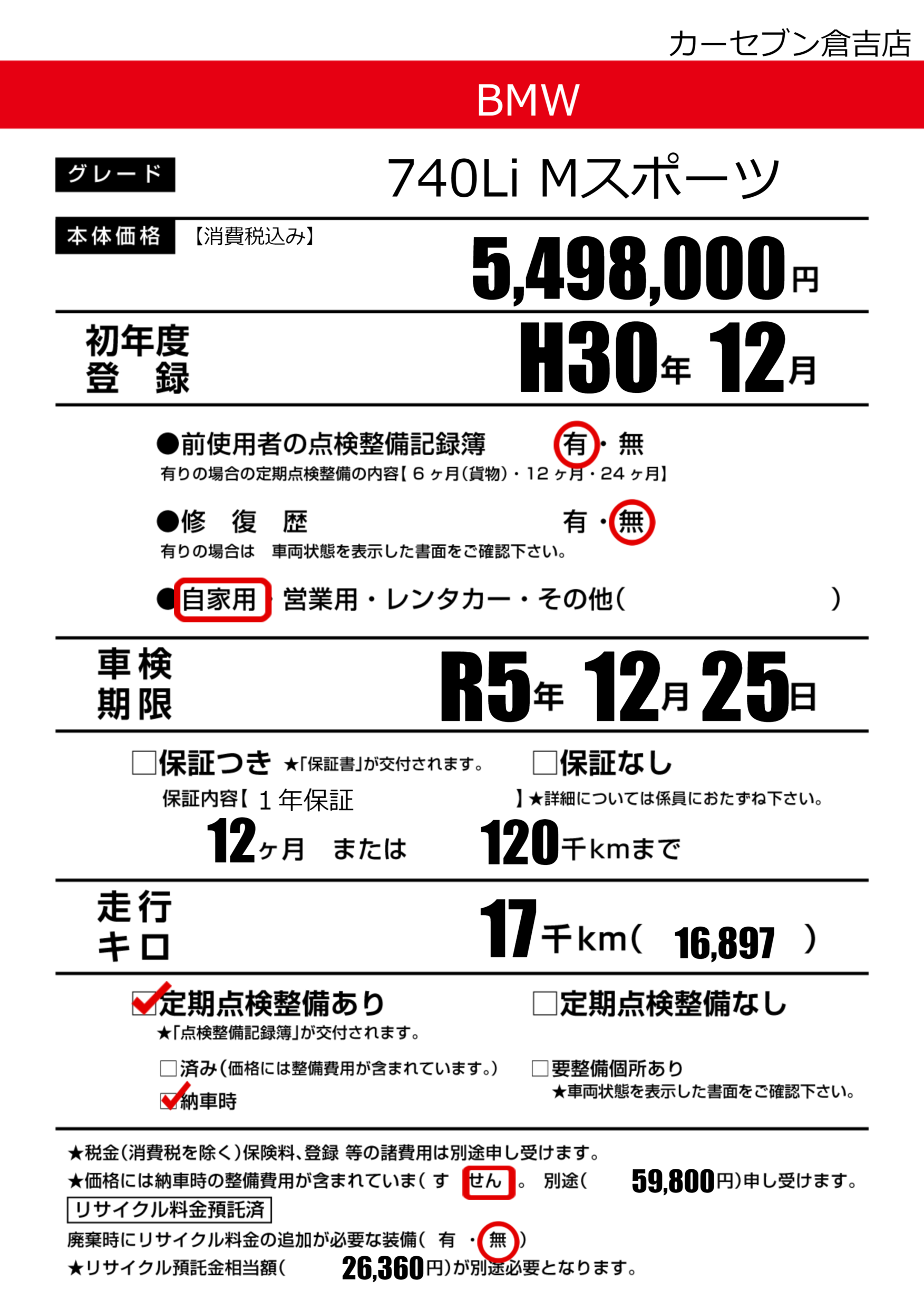 | 走行キロ | 1.7万km | 初年度登録 | H30年12月 |