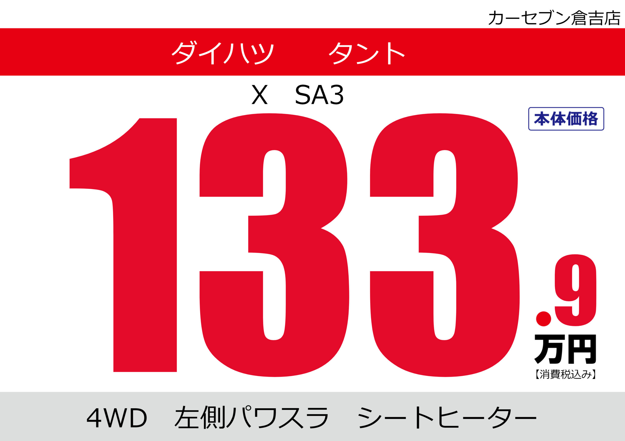 | 車名 | ダイハツ タント | グレード ミッション 排気量 |