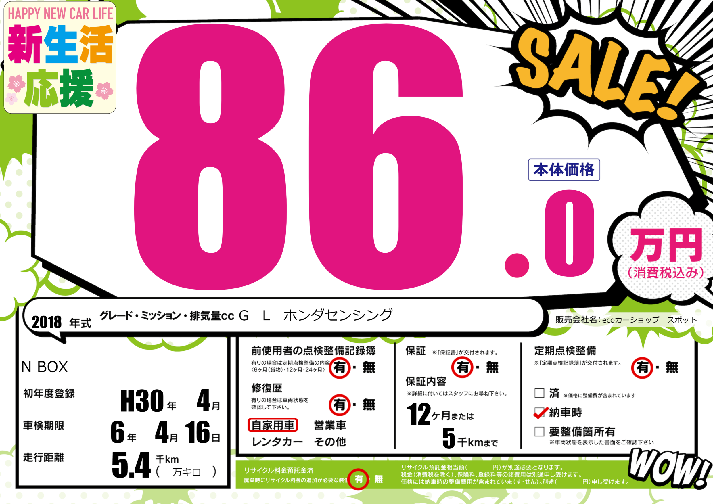 | 車名 | N BOX | グレード ミッション 排気量 |