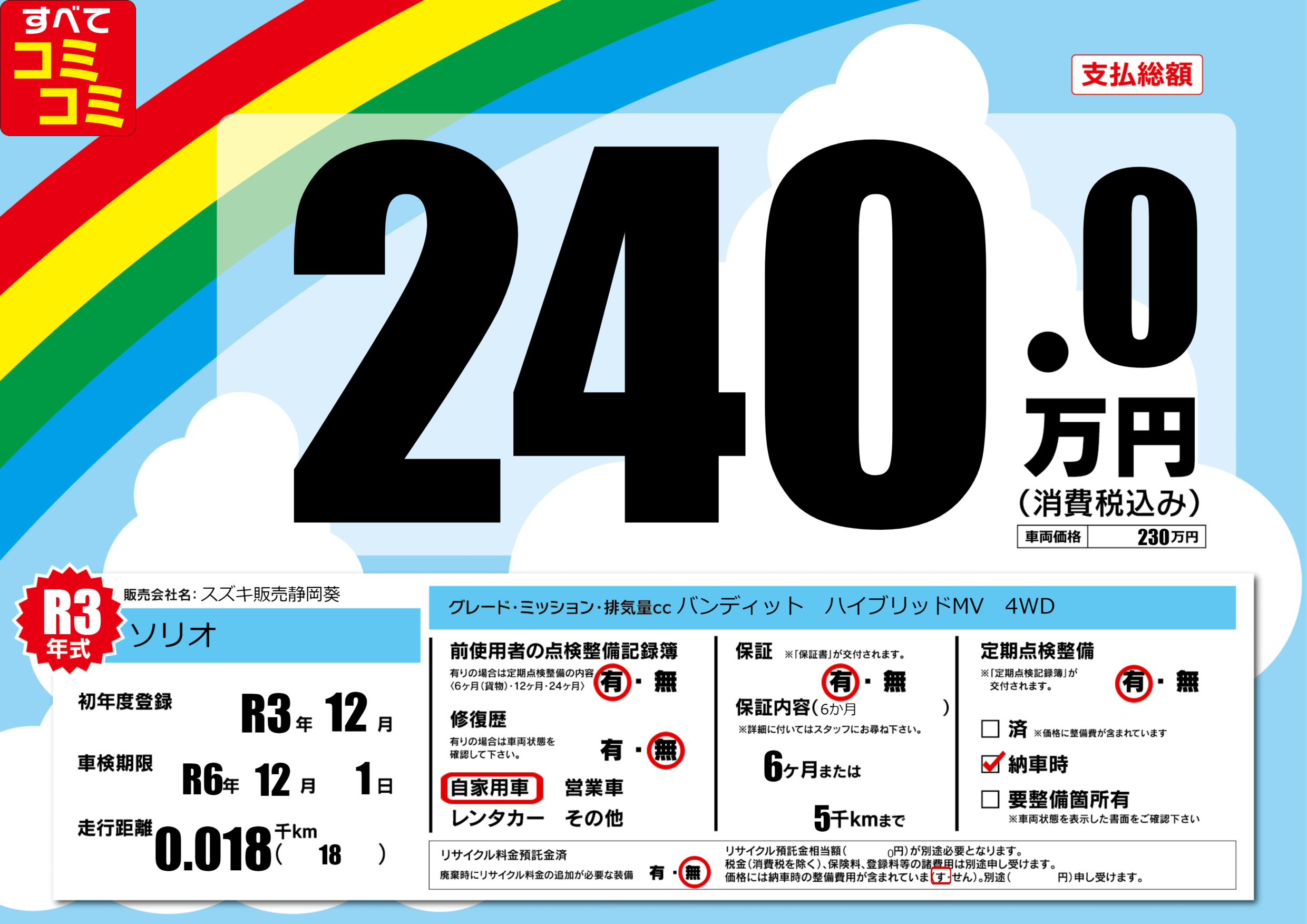 | 車名 | ソリオ | グレード ミッション 排気量 |