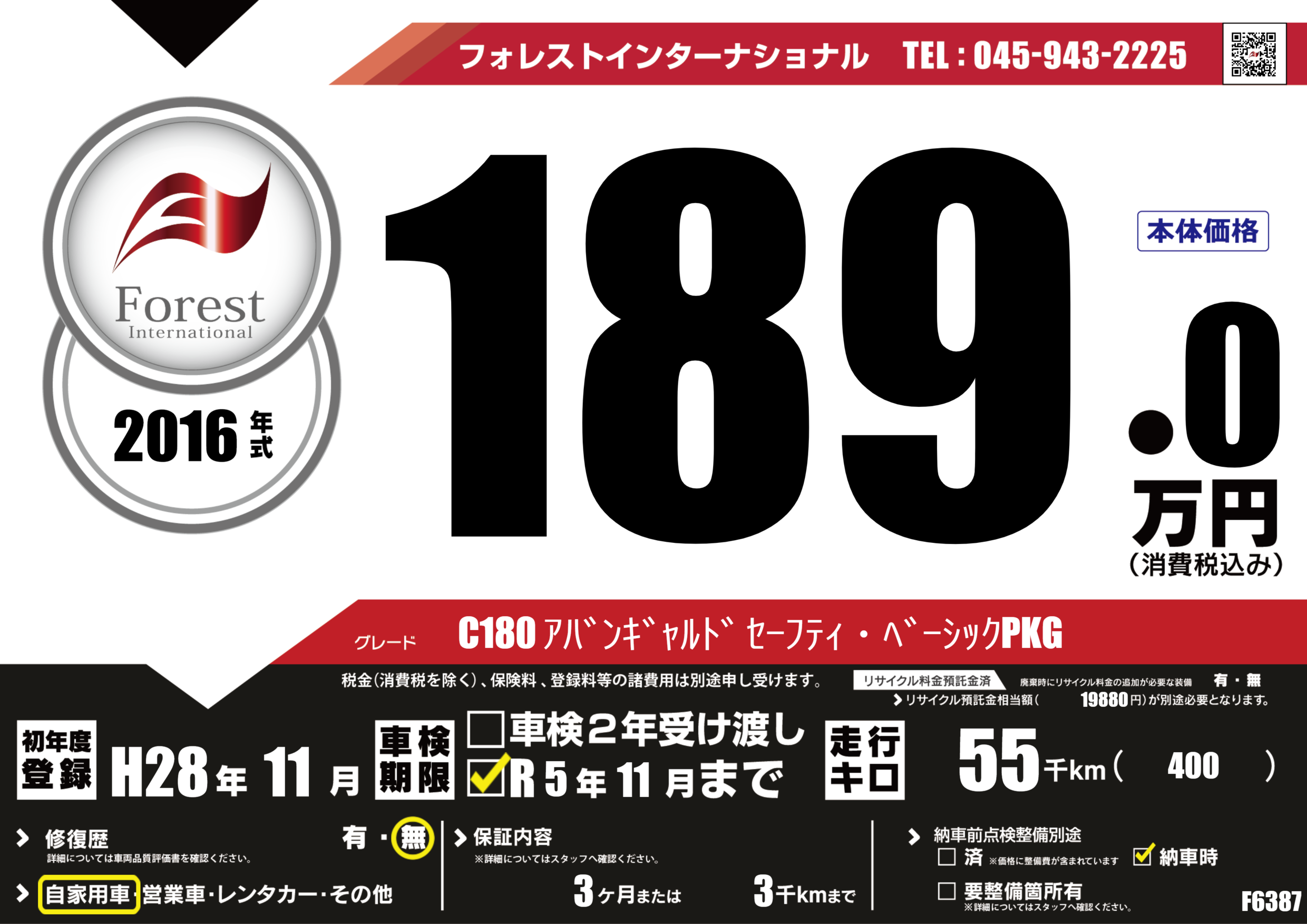 | 走行キロ | 5.5万km | 初年度登録 | H28年11月 |