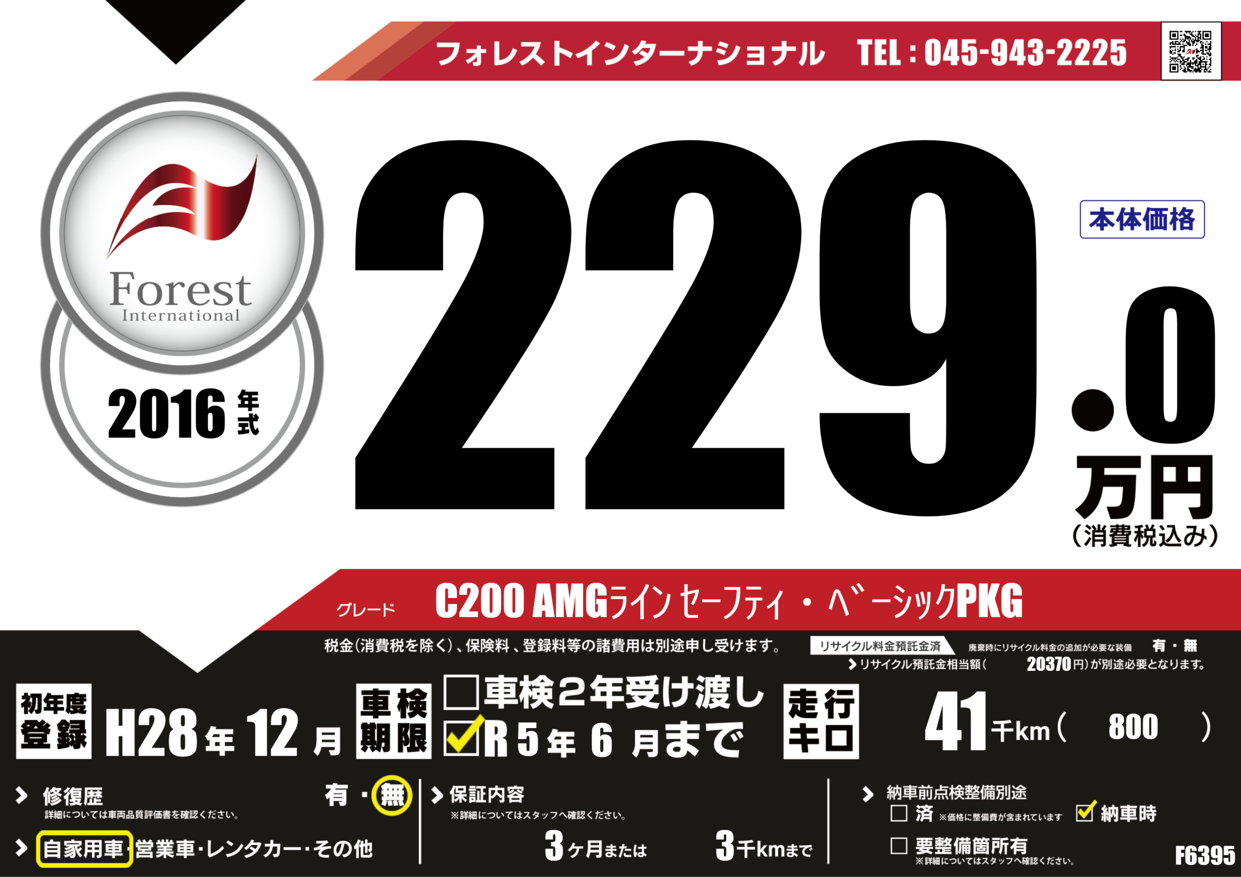 | 走行キロ | 4.1万km | 初年度登録 | H28年12月 |
