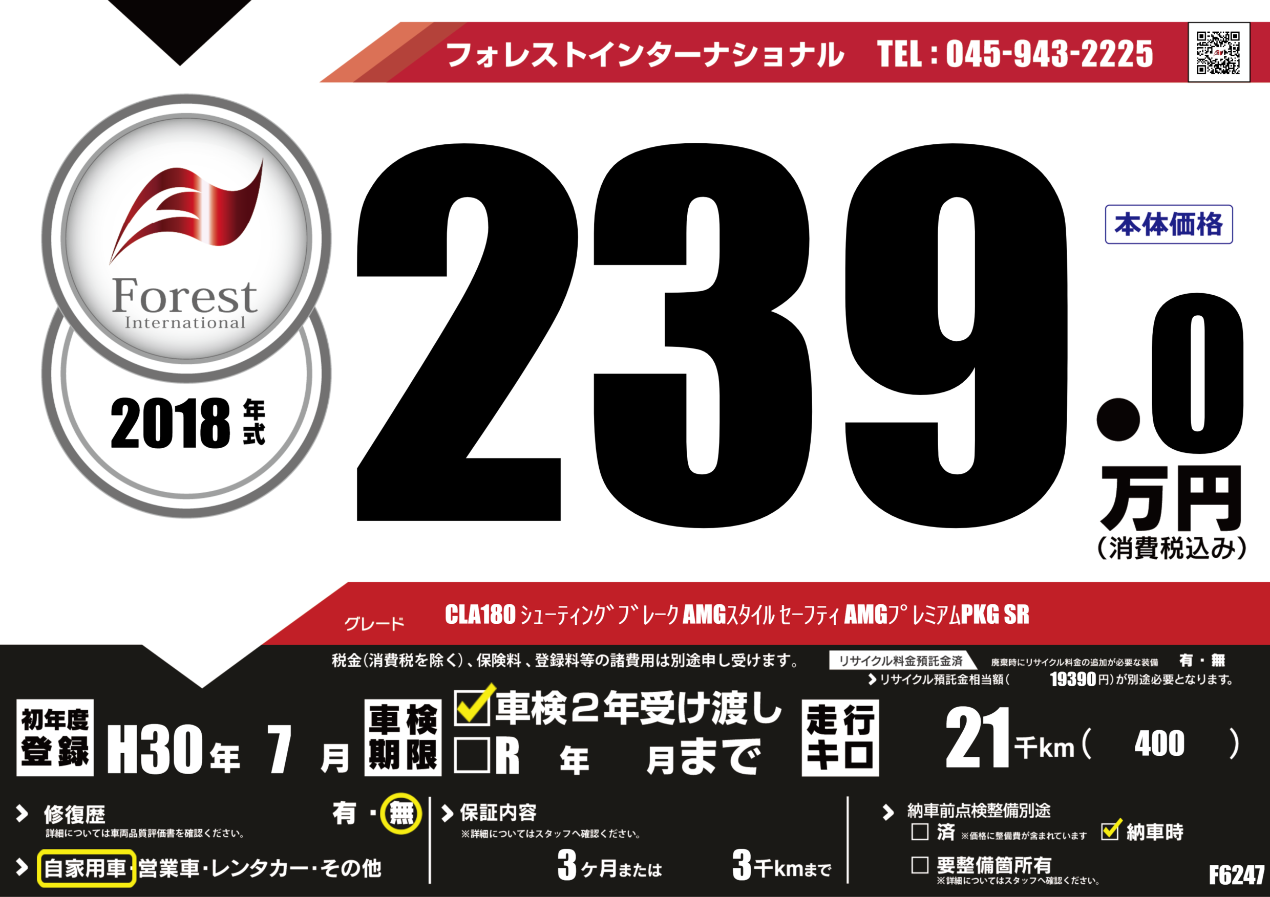 CLA180 シューティングブレーク AMGスタイル セーフティ AMGプレミアムPKG SR |