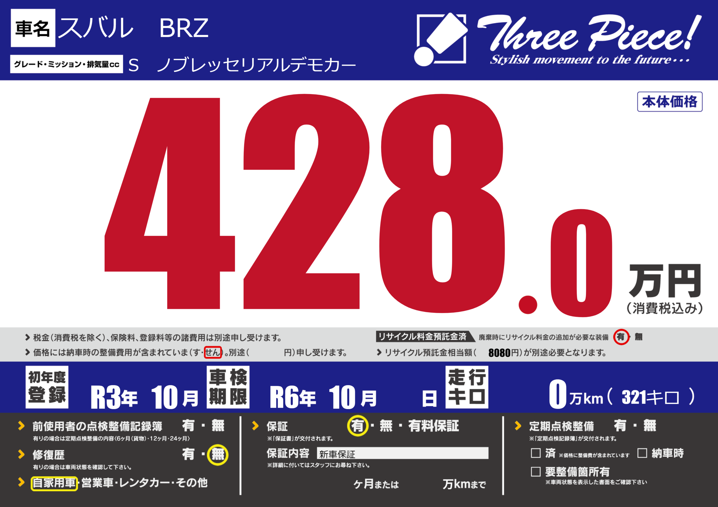 | 車名 | スバル BRZ | グレード ミッション 排気量 |
