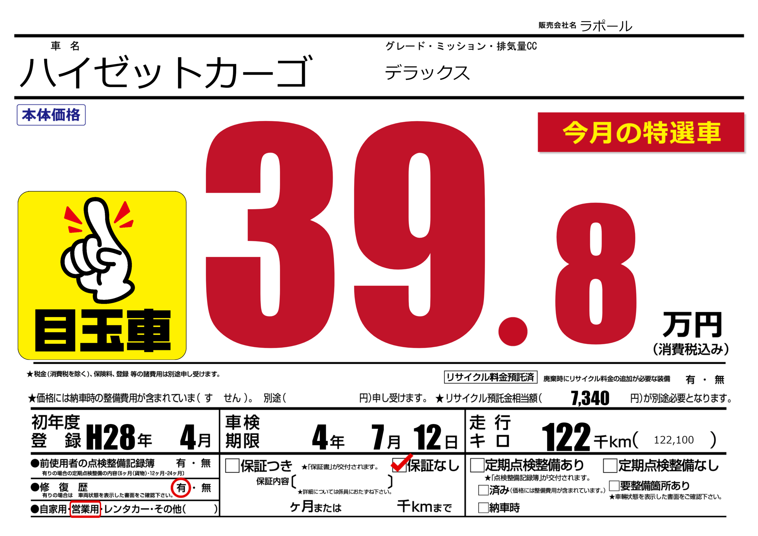 株式会社ラポール 軽バンマーケットの展示車をすべて見る