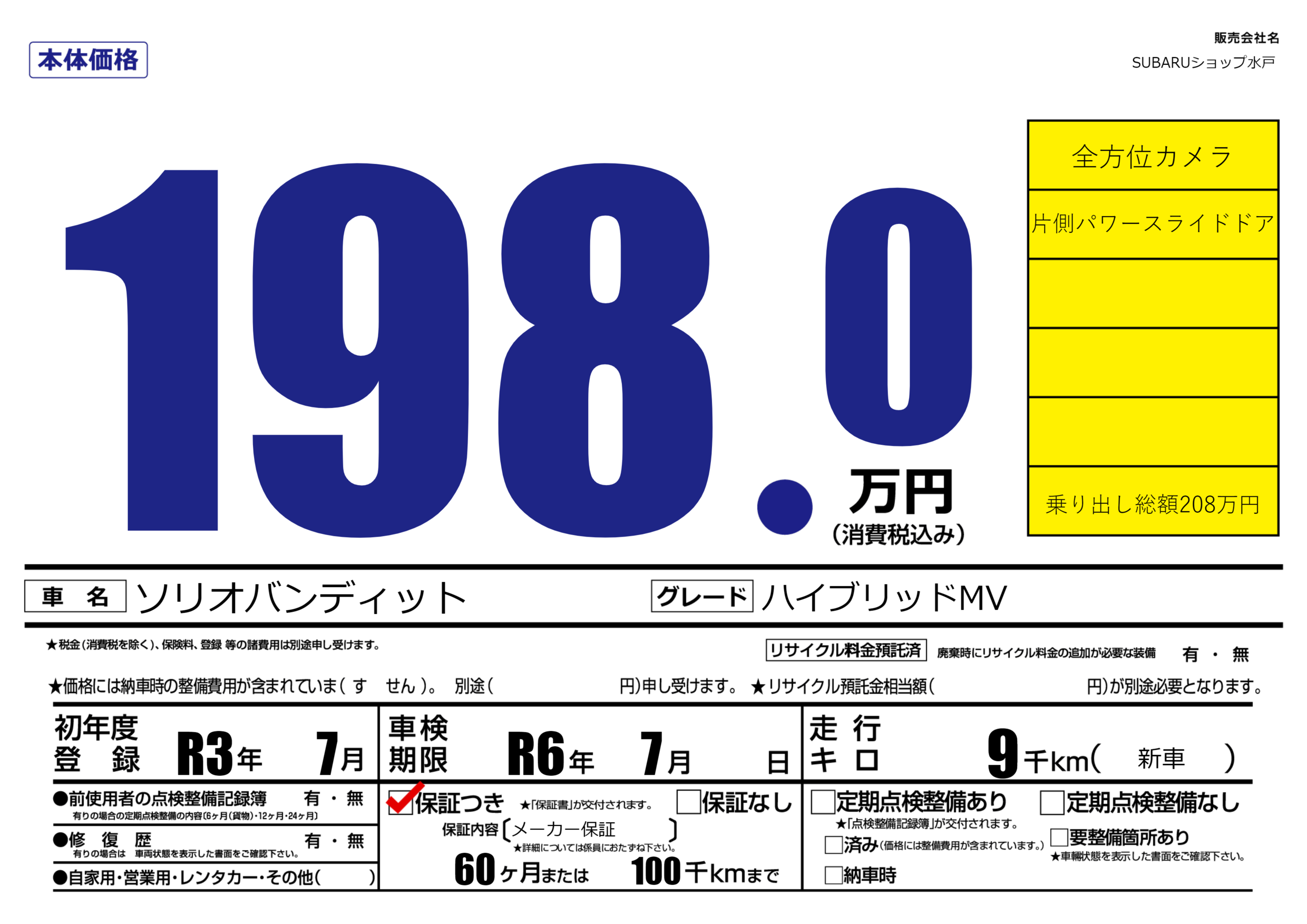 保証付き 保証内容(メーカー保証) 60ヶ月または100千km |