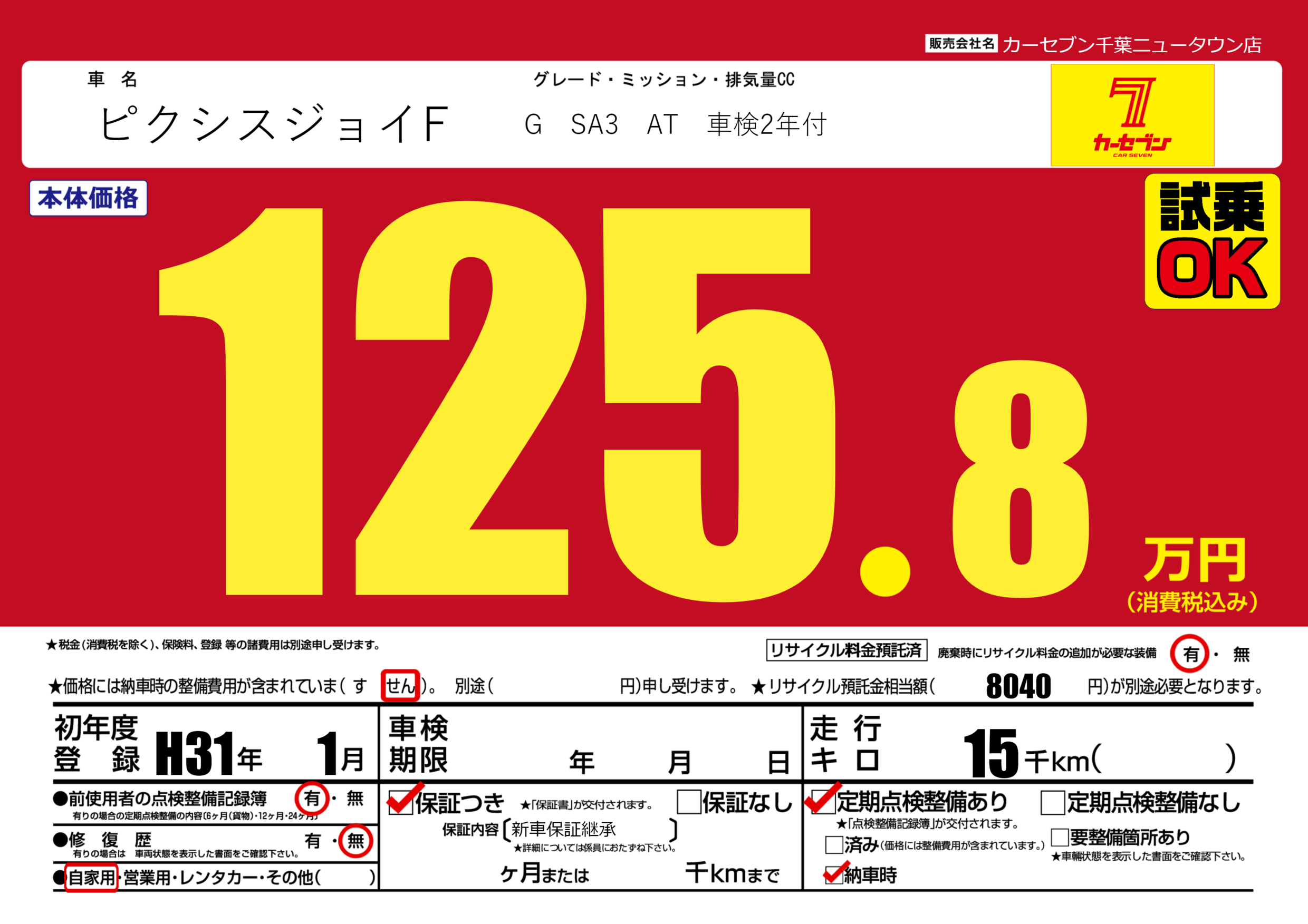| 定期点検整備 | 定期点検整備あり 納車時あり | ||
