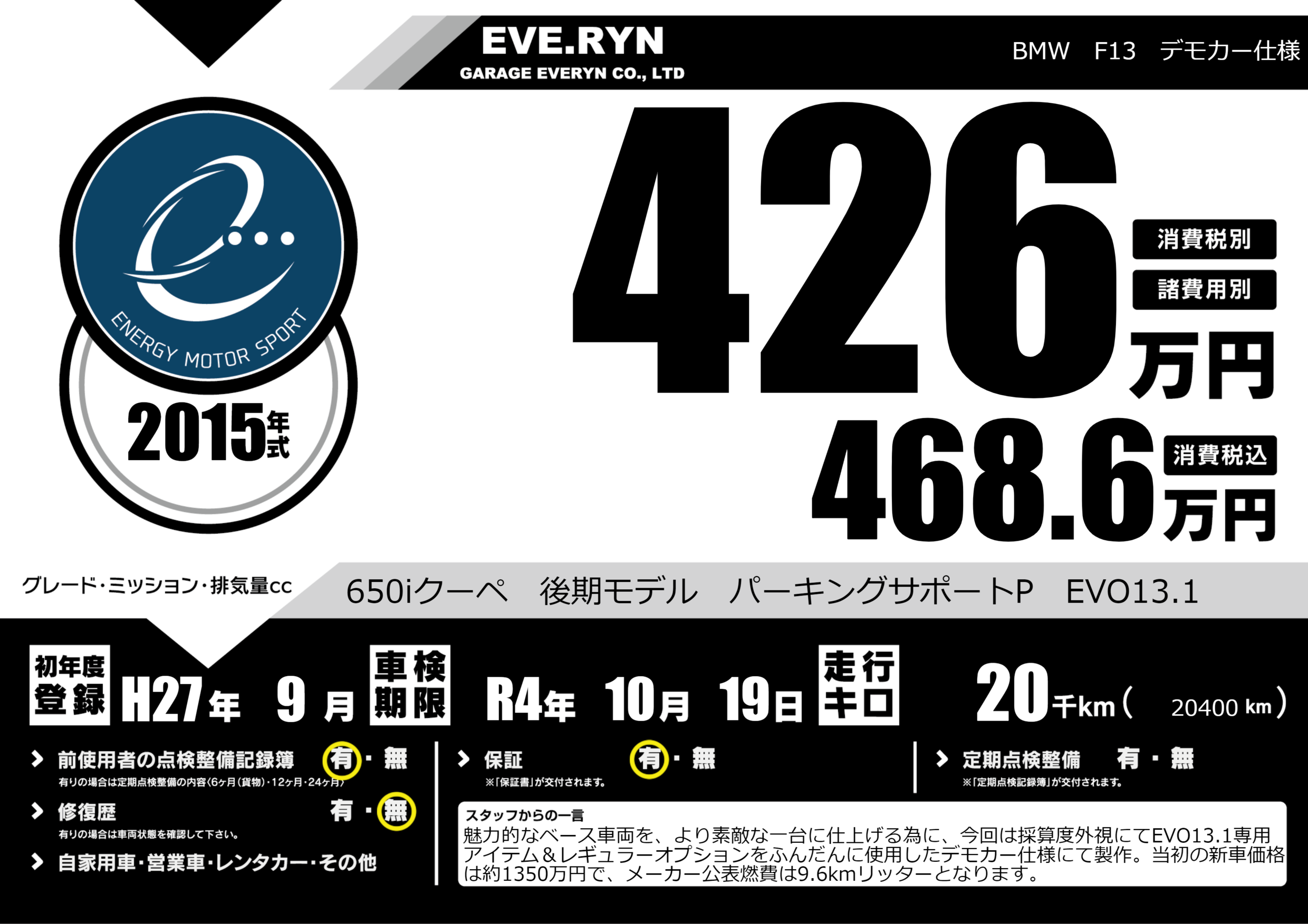 650iクーペ 後期モデル パーキングサポートP EVO13.1 |