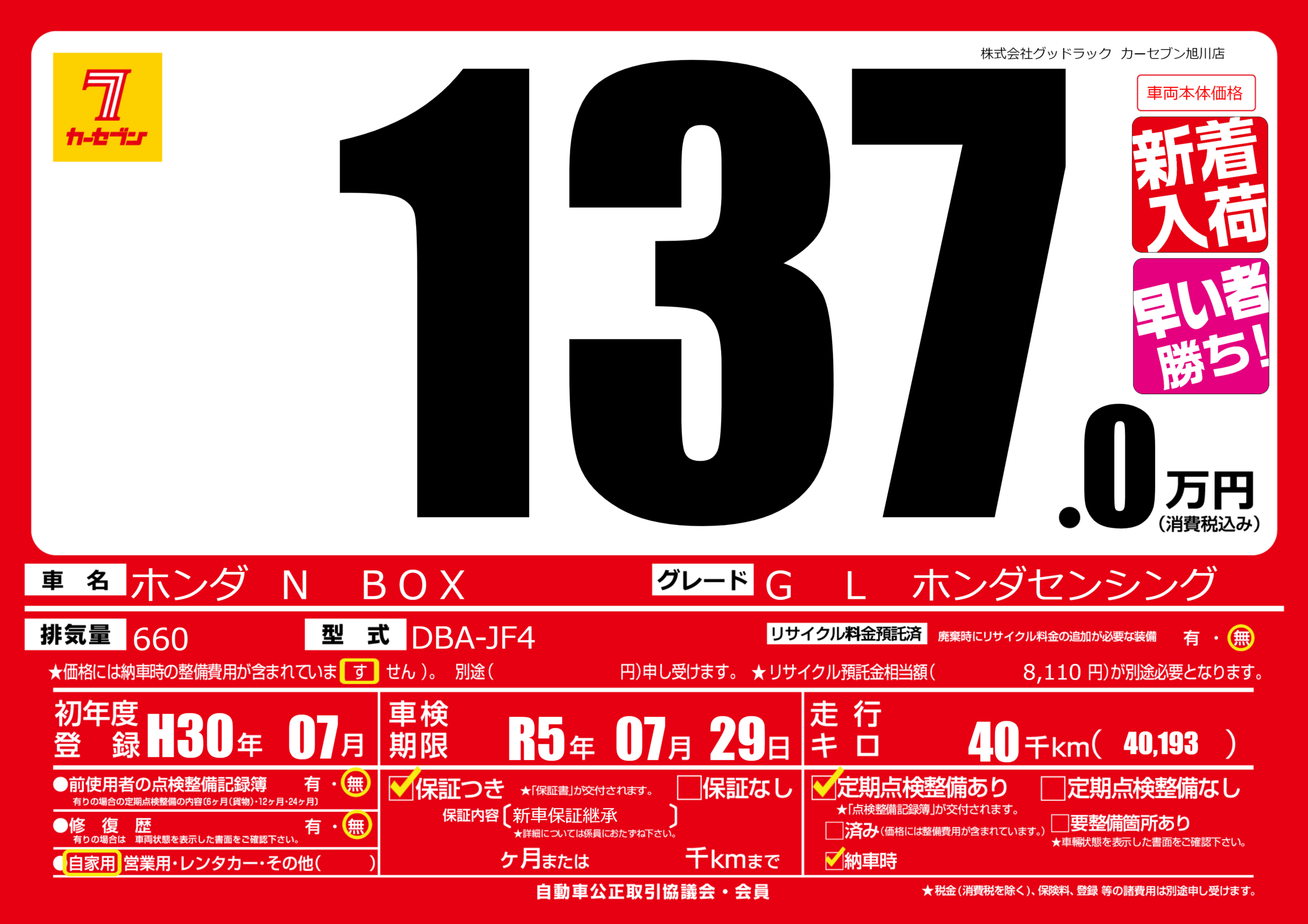 | 初年度登録 | H30年07月 | ||