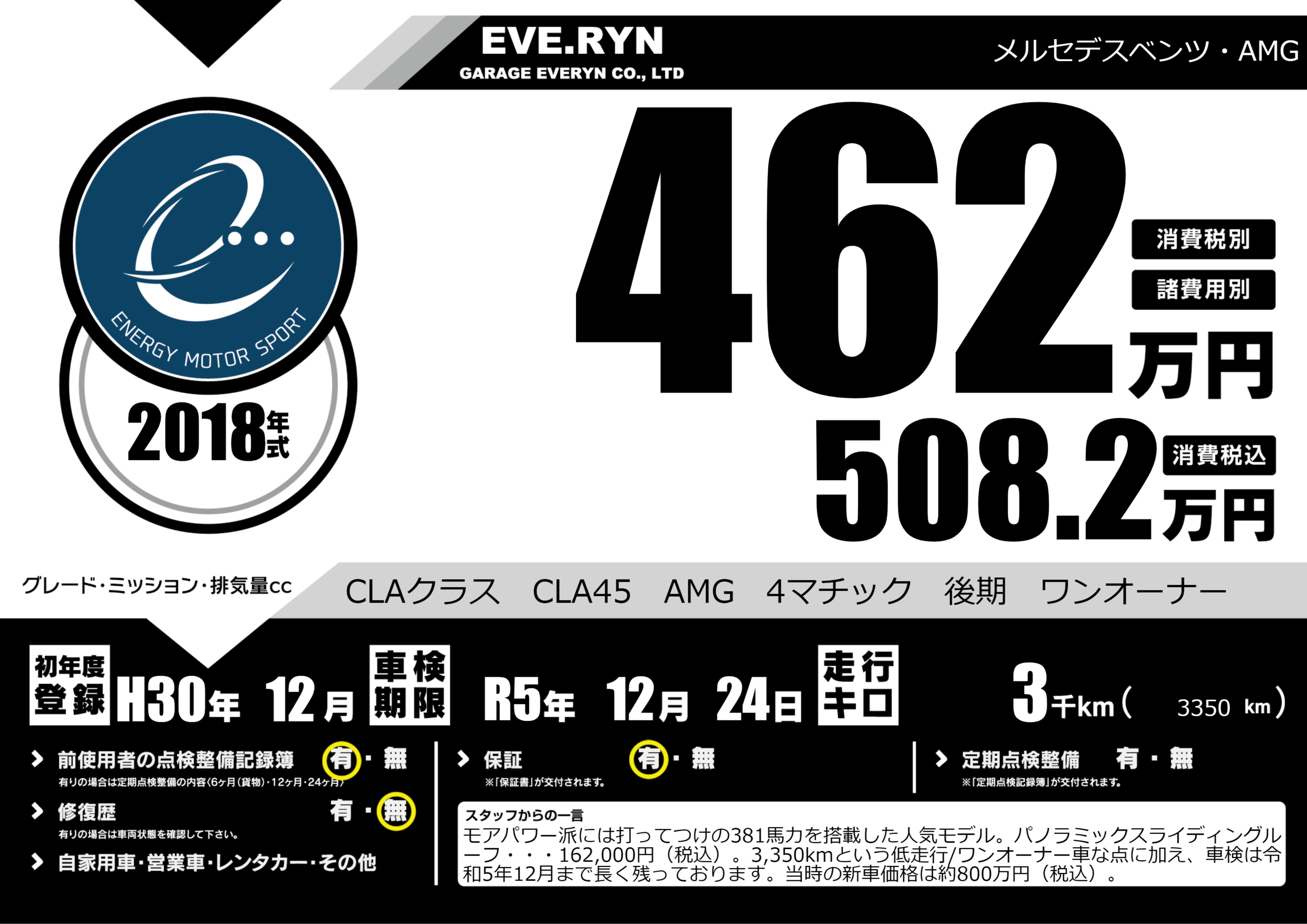 CLAクラス CLA45 AMG 4マチック 後期 ワンオーナー |